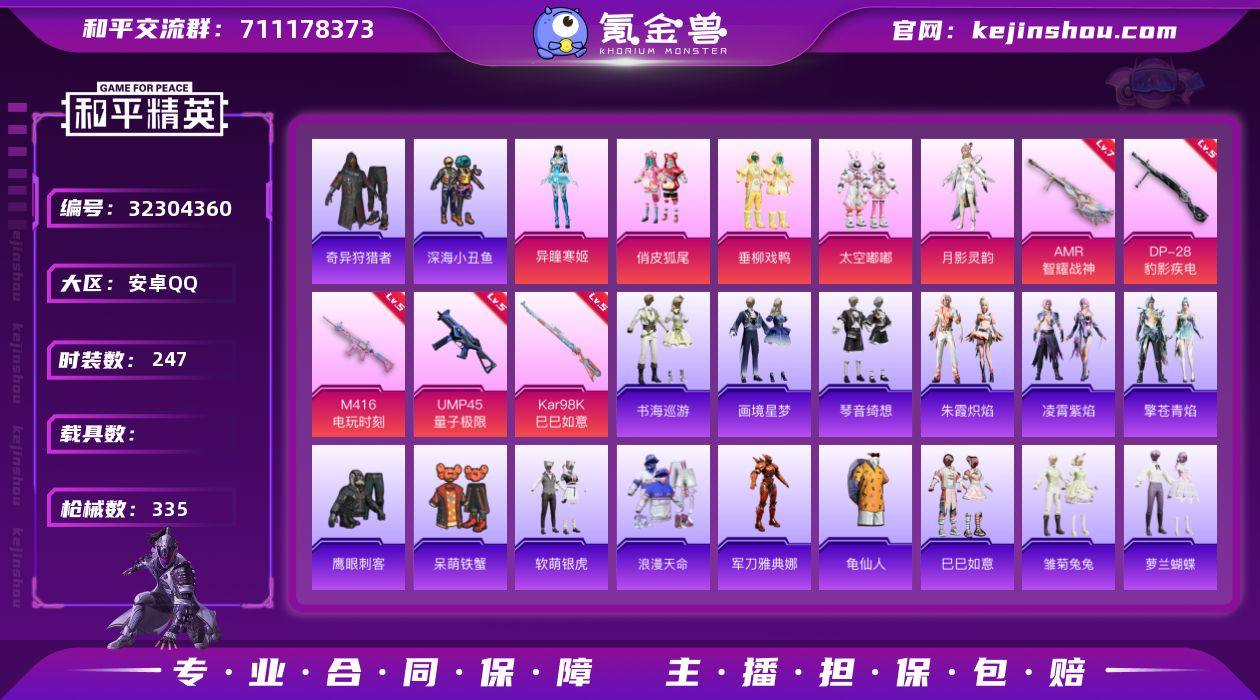 安卓 手Q-5粉装-7特效枪-0载具-4粉色飞行器-106536热力值-21王牌印记-247套装-335枪皮 【热门品类】:套装-浪漫天命,套装-深海小丑鱼,套装-奇异狩猎者,角色-军刀雅典娜,套装-龟仙人 【粉色套装】:粉装-俏皮狐尾,粉装-垂柳戏鸭,粉装-太空嘟嘟,角色-月影灵韵,角色-异瞳寒姬 【粉色枪皮等级】:M416-电玩时刻(五级),UMP45-量子极限(五级),AKS-74U-森灵之息(五级),Kar98K-巳巳如意(五级),Mk14-福马献瑞(五级),AMR-智耀战神(七级),DP-28-豹影疾电(五级) 【粉色枪皮】:M416-电玩时刻,UMP45-量子极限,AKS-74U-森灵之息,Kar98K-巳巳如意,Mk14-福马献瑞,AMR-智耀战神,DP-28-豹影疾电 【粉色飞行器】:炫彩糖果飞行器,星夜魔法师飞行翼,祥瑞锦鲤飞行器,星空武士飞行器 【粉色降落伞】:金风玉露降落伞,神秘黑猫降落伞,四圣焕新降落伞,古战神甲降落伞,风花雪月降落伞,环太平洋降落伞,飒粉甜心降落伞,未来歌姬降落伞,萌物绒绒降落伞,精灵梦叶罗丽降落伞,创世·救赎降落伞,异瞳寒姬降落伞,炫彩糖果降落伞,虹云熊熊降落伞 【稀有套装】:套装-龟仙人,套装-巳巳如意,套装-雪国风尚,套装-炫彩糖果,套装-马上有钱,套装-雏菊兔兔,套装-萝兰蝴蝶,套...