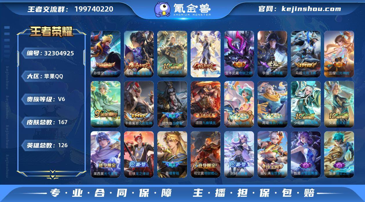 无二次-苹果Q-V6-最强王者段位-126英雄-167皮肤-1典藏皮肤-9传说-39史诗HZ2631210 【英雄全皮】:孙权全皮,敖隐全皮,司空震全皮,影全皮 【荣耀典藏】:孙悟空全息碎影 【传说皮肤】:马超神骥逐星野,后羿神树通天,司空震愿照山河定,云缨幻光神枪,桑启鸣野蒿,马超无双飞将,李信一念神魔,干将莫邪久胜战神,宫本武藏地狱之眼 【限定皮肤】:暃埋骨钱,蒙犽顽岩魄,大乔绒语心约,姜子牙天穹之誓,狄仁杰阴阳师,赵云皇家上将,元歌无心,狄仁杰魔术师,达摩沙漠行僧,项羽海滩派对,程咬金演武夺筹,李元芳云中旅人,钟馗驱傩正仪,鬼谷子原初探秘者,鬼谷子五谷丰年,沈梦溪大漠名商,裴擒虎擒涛扼浪,鲁班大师探海日志,桑启海盐诗旅,艾琳女武神,司空震地狱燃心,鬼谷子天穹祈灯,姬小满妄想食味,刘邦剑破天穹,镜青焰无极,项羽苍威无极,周瑜熔金海岸 【年限皮肤】:司空震愿照山河定 【赛季限定】:鬼谷子原初探秘者,程咬金演武夺筹,钟馗驱傩正仪,达摩沙漠行僧,沈梦溪大漠名商,李元芳云中旅人,桑启海盐诗旅,裴擒虎擒涛扼浪,鲁班大师探海日志,鬼谷子天穹祈灯,刘邦剑破天穹,姜子牙天穹之誓,东皇太一噬灭天穹,太乙真人谧流熔炉,钟馗虚灵犬护,亚瑟...