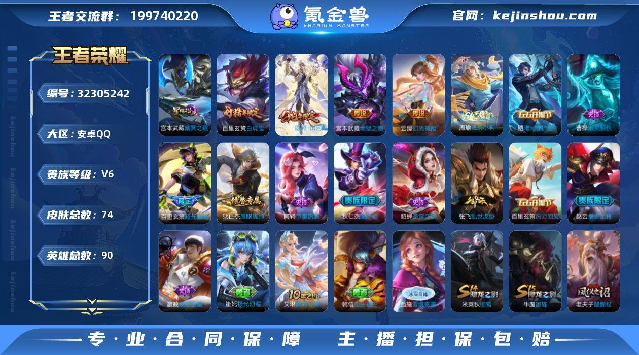 贵族6/皮肤136/典藏1/传说8/史诗40/英雄116/蒙恬全皮/弑枪猎影/神树通天/幻光神枪/鸣野蒿/典韦战鼓燎原/澜逐花归海/云鹰飞将/黄金白羊座/地狱之眼/天穹之誓(s36)/阴阳师/皇家上将/降魔/云间偶戏/魔术师/海滩派对/至尊宝/李小龙/胡桃异想国/狂想玩偶喵/地狱燃心/蒙恬荣光圣徽/妲己灵卜魔法/蔬乡物语(李元芳)/熔金海岸/紫霞仙子/未来纪元-赵云/冰雪圆舞曲/地狱岩魂/鬼剑武藏/水果甜心/暗夜贵公子/女仆咖啡/金属风暴/圣诞狂欢/千年之狐/水晶猎龙者/缤纷独角兽/暗隐猎兽者/心灵战警/冰冠公主/曙光守护者/逐浪之夏/节奏热浪/鹰眼统帅/百相守梦-百里守约/茶境仙/万物之道/鸭鸭历险记-刘禅/龙之律动/百相守梦-周瑜/百相守梦-黄忠/涂山容容/光弋星穹/九幽镇关/线条小狗-周瑜/教廷特使/街头霸王/天使之翼/时尚教父/黄金武士/拳王/五福同心/阿尔法小队/纽约教父/龙腾万里/命运角斗场/功夫老勺/掌控之力/敏锐之力/幻乐之宴/坚韧之力/虹云星官/丁香结/乓乓大师/铁甲之心/蔚蓝守将/幻泉雾影-海月/暗都幽影/噬灭天穹(s37)/百相守梦-老夫子/雾都夜雨/逐霄战戟/苍林狼骑/谧流熔炉/铁骨偃魂/访茗客/雪境奇遇-西施/星梦巡礼/金福满堂/景韶洛都/玫蓝誓约/浪漫序章/虚灵犬护/鸭鸭历险记-沈梦溪/春野闲踪/灵野札记/布丁狗之约/命运加冕/小满鸭/死霸装/逆浪荇歌/百相守梦-孙策/锦麟游梦/踏浪烽翎/克喵/罗小黑战记/荣光之誓/往忆晖光/鹤鸣心笺/溯影追猎/苍云破阵/福禄兄弟/西部大镖客-孙悟空/地府判官/圣殿之光/激情绿茵/埃及法老/芝加哥教父/东海龙王/第七人偶/绝影神枪/威尼斯狂欢/街头旋风/踏雪寻梅/午夜歌剧院/魇语军师/灼热之刃/创世神祝/归虚梦演-曜/秩序猎龙将/孤猎/启蛰/碧珀绯影/画中游