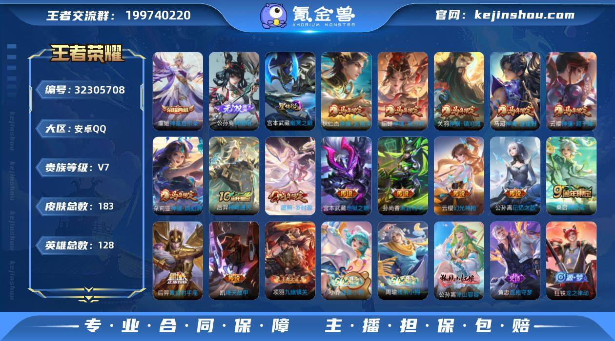 可二次【特价出售/店主推荐】安卓Q-V8-荣耀黄金II段位-126英雄-216皮肤-1典藏皮肤-1无双-1珍品传说-1星传说-19传说-57史诗 【英雄全皮】:达摩全皮,空空儿全皮 【荣耀典藏】:夏侯惇无限飓风号 【无双皮肤】:李信问心剑 【珍品传说】:伽罗沧流箭 【传说皮肤】:关羽神骥镇沧海,后羿神树通天,司空震愿照山河定,澜愿照九州拓,典韦战鼓燎原,曜李逍遥 ,兰陵王默契交锋,诸葛亮时雨天司,铠绛天战甲,镜炽阳神光,虞姬启明星使,关羽武圣,李信一念神魔,貂蝉猫影幻舞,张良黄金白羊座,达摩黄金狮子座,后羿黄金射手座,孙尚香末日机甲,狄仁杰超时空战士 【限定皮肤】:狄仁杰阴阳师,赵云皇家上将,庄周高山流水,高渐离玩趣恶龙,吕布御风骁将,元歌云间偶戏,元歌无心,狄仁杰魔术师,狄仁杰万华元夜,达摩星际陆战队,达摩沙漠行僧,项羽海滩派对,老夫子醍醐杖,关羽武圣,程咬金演武夺筹,王昭君午后时光,兰陵王默契交锋,花木兰默契交锋,亚瑟潮玩骑士王,李元芳云中旅人,虞姬启明星使,钟馗驱傩正仪,干将莫邪冰霜恋舞曲,雅典娜黎明之约,鬼谷子原初探秘者,诸葛亮时雨天司,苏烈千军破阵,沈梦溪大漠名商,明世隐疑决卦,裴擒虎李小龙,裴擒虎擒涛扼浪,狂铁电玩高手,米莱狄胡桃异想国,曜李逍遥 ,鲁班大师探海日志,镜匿光追影者,桑启海盐诗旅,张良古海寻踪,鬼谷子天穹祈灯,刘邦剑破天穹,刘备异域游侠 【年限皮肤】:诸葛亮时雨天司,吕布御风骁将,司空震愿照山河定,澜愿照九州拓 【赛季限定】:明世隐疑决卦,老夫子醍醐杖,鬼谷子原初探秘者,狄仁杰万华元夜,程咬金演武夺筹,钟馗驱傩正仪,苏烈千军破阵,达摩沙漠行僧,沈梦溪大漠名商,李元芳云中旅人,桑启海盐诗旅,裴擒虎擒涛扼浪,鲁班大师探海日志,张良古海寻踪,鬼谷子天穹祈灯,刘邦剑破天穹,太乙真人谧流熔炉,钟馗虚...