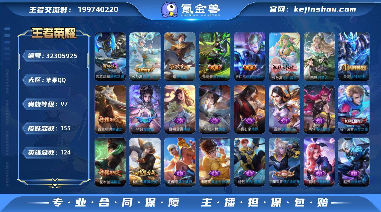 苹果Q-V6-最强王者段位-124英雄-123皮肤-1典藏皮肤-5传说-31史诗 【英雄全皮】:孙权全皮 【荣耀典藏】:花木兰九霄神辉 【传说皮肤】:花木兰异界灵契,百里守约碎云,橘右京枫霜尽,虞姬云霓雀翎,孙悟空地狱火 【限定皮肤】:白起狰,狄仁杰阴阳师,虞姬凯尔特女王,赵云皇家上将,庄周高山流水,孙膑妖精王,扁鹊炼金王,芈月重明,夏侯惇朔风刀,曹操烛龙,典韦穷奇,狄仁杰魔术师,狄仁杰万华元夜,达摩沙漠行僧,项羽海滩派对,老夫子醍醐杖,程咬金演武夺筹,王昭君午后时光,兰陵王金庭之子,橘右京枫霜尽,牛魔御旌,李元芳云中旅人,钟馗驱傩正仪,太乙真人饕餮,鬼谷子原初探秘者,鬼谷子五谷丰年,苏烈千军破阵,弈星混沌棋,沈梦溪大漠名商,明世隐疑决卦,裴擒虎李小龙,狂铁御狮,狂铁电玩高手,米莱狄御霄,盾山御銮,上官婉儿梁祝,鲁班大师探海日志,张良古海寻踪,姬小满妄想食味,沈梦溪龙舞盛年,刘邦剑破天穹 【赛季限定】:孙膑妖精王,扁鹊炼金王,虞姬凯尔特女王,白起狰,太乙真人饕餮,曹操烛龙,芈月重明,典韦穷奇,狂铁御狮,米莱狄御霄,牛魔御旌,盾山御銮,夏侯惇朔风刀,弈星混沌棋,明世隐疑决卦,老夫子醍醐杖,鬼谷子原初探秘者,狄仁杰万华元夜,程咬金演武夺筹,钟馗驱傩正仪,苏烈千军破阵,达摩沙漠行僧,兰陵王金庭之子,沈梦溪大漠名商,李元芳云中旅人,鲁班大师探海日志,张良古海寻踪,刘邦剑破天穹,太乙真人谧流熔炉,甄姬逆浪荇歌,亚瑟荣光之誓 【战令限定】:狂铁电玩高手,王昭君午后时光,莱西奥光弋星穹,明世隐往忆晖光,周瑜线条小狗 【史诗皮肤】:明世隐百晓客,周瑜线条小狗,女娲万灵启世,莱西奥光弋星穹,公孙离涂山容容,狂铁龙之律动,姬小满妄想食味,鬼谷子五谷丰年,狂铁电玩高手,澜赏金猎手,庄周高山流水,裴擒虎李小龙,孙尚香时之恋人...