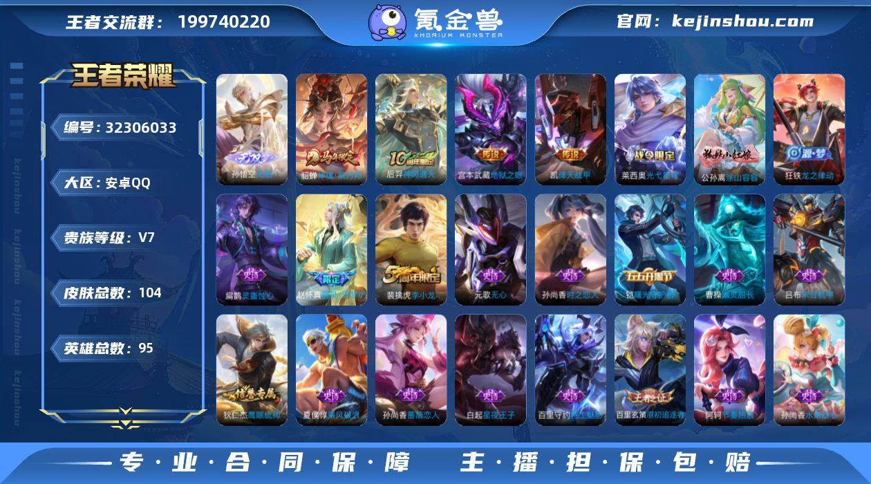 安卓Q-V5-至尊星耀II段位-123英雄-118皮肤-1典藏皮肤-8传说-25史诗【英雄全皮】:孙权全皮,敖隐全皮,空空儿全皮,影全皮【荣耀典藏】:韩信弑枪猎影【传说皮肤】:马超神骥逐星野,后羿神树通天,云缨幻光神枪,桑启鸣野蒿,澜逐花归海,东皇太一灼幽烈阳,花木兰冠军飞将,宫本武藏地狱之眼【限定皮肤】:姜子牙天穹之誓,狄仁杰阴阳师,赵云皇家上将,孙尚香蔷薇恋人,元歌无心,项羽海滩派对,鬼谷子天穹祈灯,沈梦溪龙舞盛年【赛季限定】:鬼谷子天穹祈灯,姜子牙天穹之誓,东皇太一噬灭天穹,太乙真人谧流熔炉,钟馗虚灵犬护,甄姬逆浪荇歌,亚瑟荣光之誓【战令限定】:周瑜百相守梦,孙策百相守梦,莱西奥光弋星穹,明世隐往忆晖光,周瑜线条小狗,小乔线条小狗【史诗皮肤】:明世隐百晓客,周瑜线条小狗,小乔线条小狗,女娲万灵启世,莱西奥光弋星穹,西施织梦人,黄忠百相守梦,周瑜百相守梦,狂铁龙之律动,阿轲化蝶舞,赵怀真器灵浮梦炉,元歌无心,狄仁杰鹰眼统帅,铠曙光守护者,花木兰水晶猎龙者,张飞乱世虎臣,曹操幽灵船长,刘禅绅士熊喵,墨子金属风暴,妲己女仆咖啡,妲己魅力维加斯,孙尚香水果甜心,孙尚香蔷薇恋人,宫本武藏鬼剑武藏,赵云皇家上将,...