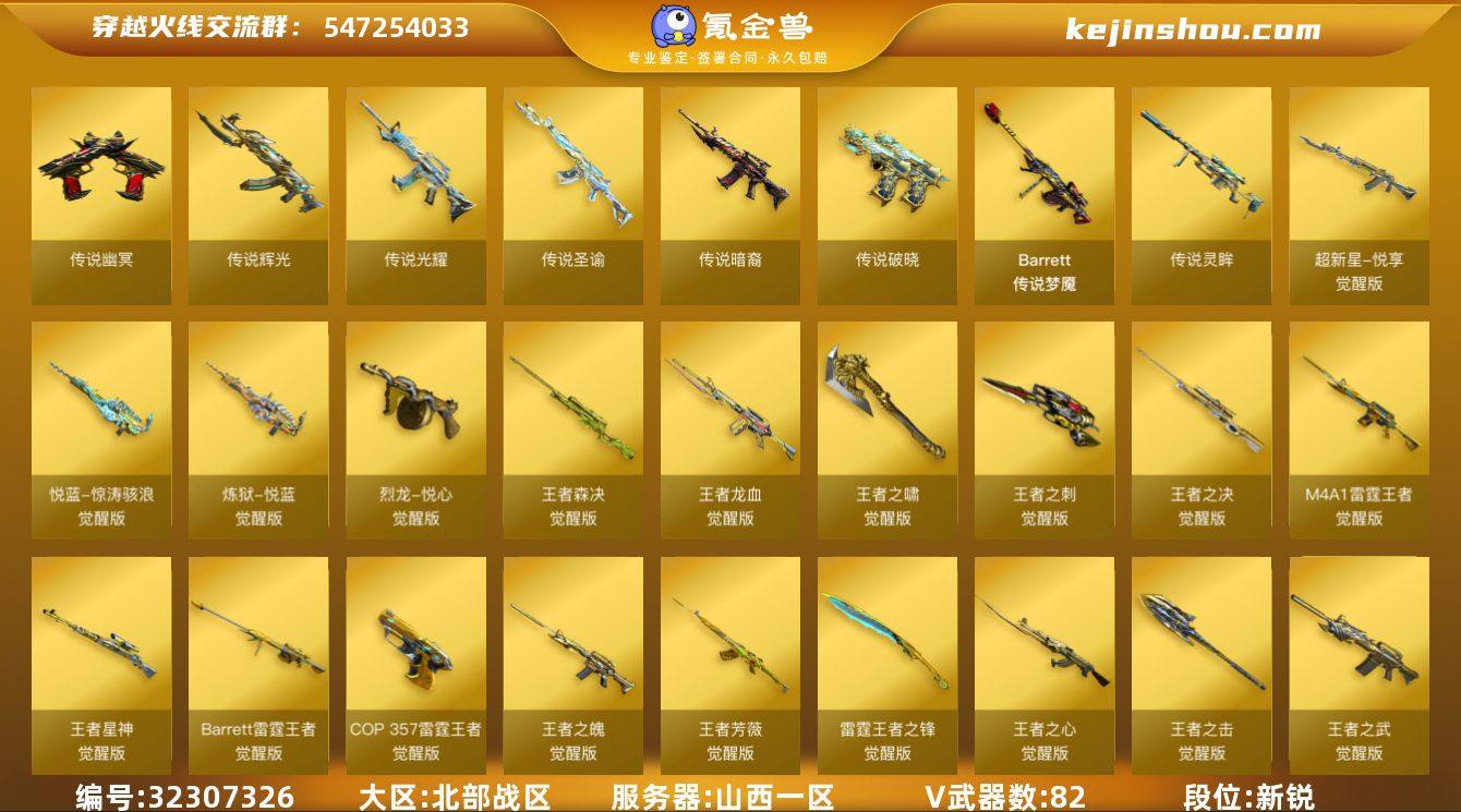 11传说,三花聚顶,传说女帝,(四防),艾丽莎(四防) 影刹(四防),幻神三件套,裁决三件套 ,副武器全齐,双小人斯太尔,三赤芒蝶刃,多炼狱,六烈六盘,六黑骑士,挑战金狐套。