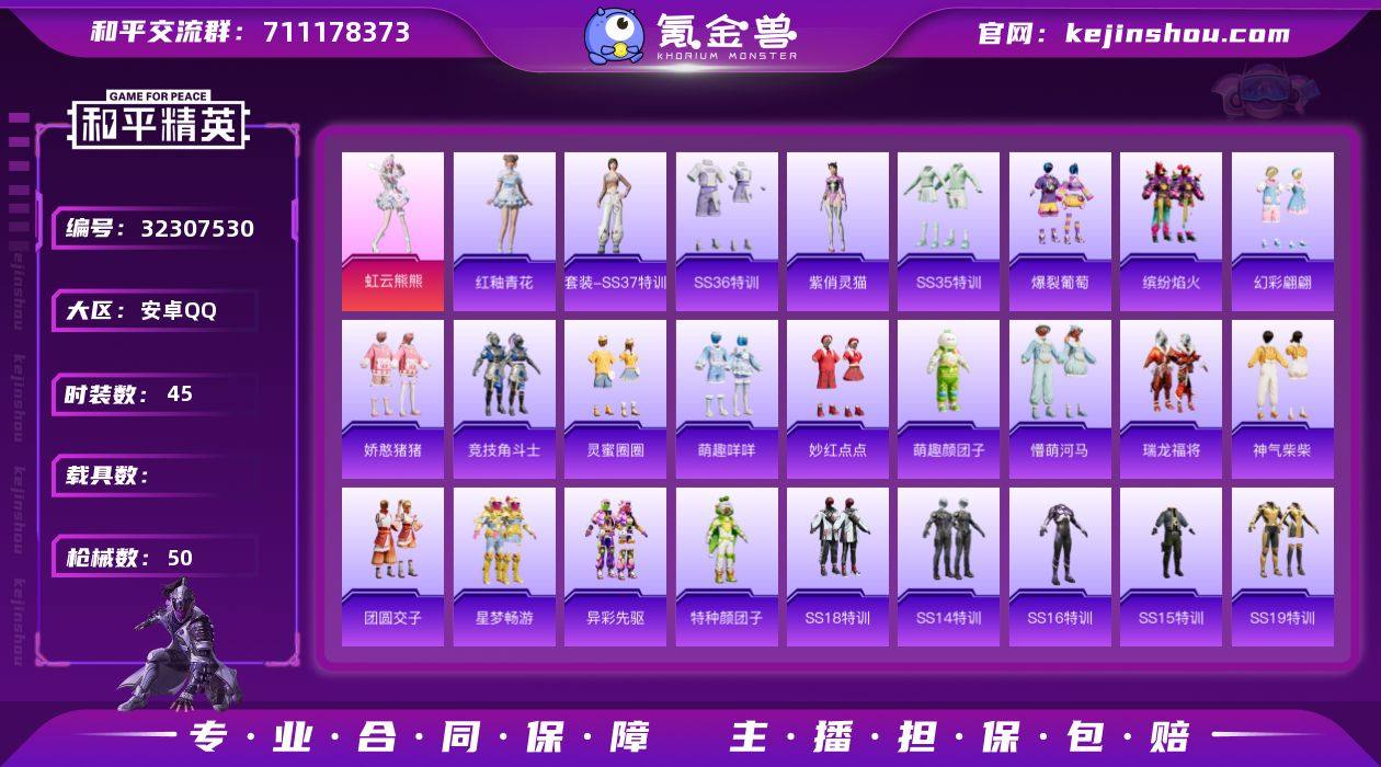 【kyhp263】安卓 手Q-1粉装-6特效枪-0载具-1粉色飞行器-43271热力值-8王牌印记-138套装-154枪皮 【热门品类】:套装-龟仙人 【粉色套装】:角色-异瞳寒姬 【粉色枪皮等级】:蜜獾-异瞳寒姬(五级),Famas-翎光蝶翼(三级),AKS-74U-森灵之息(五级),Kar98K-巳巳如意(五级),M417-第五大道(三级),DP-28-豹影疾电(五级) 【粉色枪皮】:蜜獾-异瞳寒姬,Famas-翎光蝶翼,AKS-74U-森灵之息,Kar98K-巳巳如意,M417-第五大道,DP-28-豹影疾电 【粉色降落伞】:星之彼岸降落伞,音爆索尼克降落伞,第五大道降落伞,翎光蝶翼降落伞,异瞳寒姬降落伞,炫彩糖果降落伞 【稀有套装】:套装-龟仙人,套装-巳巳如意,角色-甜心蒙太奇,套装-雪国风尚,套装-炫彩糖果,角色-许七安,角色-冰晶湖光,套装-彩虹兔,套装-云朵鹅,套装-雪绒豹,角色-夜瞳黯灵,套装-朱霞炽焰,套装-凌霄紫焰,套装-擎苍青焰,角色-绯色魅影,角色-紫俏灵猫,套装-书海巡游,套装-画境星梦,套装-琴音绮想,角色-月烬之祷 【稀有枪皮】:AUG-冰晶雪宝,AKM-彩虹符号,AKM-破晓战魂,AKM-虎虎生威,AKM-龙的传人,M16A4-幻世战舞者,M16A4-红色方程式,M16A4-蓝色火焰,SCAR-L-夜灯,SCAR-L-炫彩节奏,SCAR-L-玉兔迎春,SCAR-L-红色方程式,M416-糯团青竹,M416-红色方程式,M416-蓝色火焰,GROZA-懵萌河马,AUG-天降萌叽,AUG-耀粉歌者,QBZ-彩虹符号,M762-天降萌叽,M762-第五大道,M762-云朵鹅,M762-登顶巅峰,G36C-懵萌河马,AC-VAL-天降萌叽,蜜獾-天降萌叽,蜜獾-娇憨猪猪,蜜獾-绯穹魔姬,ACE32-画境星梦,ARX-凌霄紫焰,UZI-天降萌叽,UZI-娇憨猪猪,UZI-炫彩节奏,UZI-红色方程式,UMP45-夜灯,UMP45-生命誓言,UMP45-蓝色火焰,Vector-彩虹符号,Vector-生命誓言,汤姆逊-耀粉歌者,MP5K-画境星梦,AKS-74U-翎光蝶翼,JS9-凌霄紫焰,P90-巳...