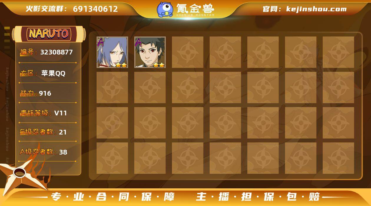 【932648】[17271248]V11 21S忍 38A忍 19通灵 916W战力 可二次 可修改实名 【S级忍者】宇智波止水「须佐能乎」,艾「忍界大战」,大筒木桃式,宇智波斑「秽土转生·解」,千手柱间·木叶创立,宇智波佐助「永恒万花筒」,神秘面具男 「红夜之刃」,春野樱 「忍界大战」,宇智波斑 「木叶创立」,宇智波带土 「忍界大战」,旗木卡卡西「须佐能乎」,大筒木舍人 「最终章」,自来也 「传说中的三忍」,漩涡鸣人 「暴怒·第六尾」,波风水门「九喇嘛连结」,漩涡鸣人·宇智波佐助,神秘面具男,宇智波鼬 「须佐能乎」,佩恩「天道」,波风水门,自来也