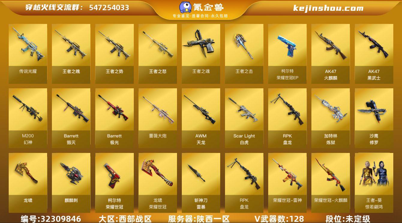 可二次实名 陕西一区128V14王者7炫金可排位会员6/传说光耀/M200-幻神+冠军之幻/王者幻神觉醒/Kar98K-星神/M4A1-青龙/HK417-朱雀/Scar Light-白虎/白虎-电玩蓝兔/M4A1-玄龙/QBZ03-金色蔷薇/荣耀世冠-火麒麟+荣耀世冠-雷神-荣耀世冠-柯尔特+荣耀世冠-龙啸/破空枪刃-夜魔+马来剑-夜魔+3套夜魔雷/沙鹰-幻兽+女皇利刃-幻神+1套幻兽雷/尼泊尔-雷霆+1套雷霆雷/斩神刀-雷暴+1套雷暴雷/【四防】王者玲珑-小乔/3炼狱1盘龙11烈龙+死亡之眼-庆典-CFS2021/AK47-火麒麟音效卡/M4A1-雷神音效卡/M4A1-黑骑士音效卡/Barrett-毁灭音效卡/雷神-烈虎皮肤/黑骑士-白马银枪/雷神-R.LGD-CFPLS18冠军/黑骑士耀金皮肤/毁灭-星空皮肤/火麒麟-雷神/火麒麟-CF2018/黑骑士-冠军之势/火麒麟-战神关羽/雷神-传奇N9/火麒麟-CFSTAR/火麒麟-冠军之心/AWM-天龙-传奇70KG/火麒麟-AG战队皮肤/雷神-荣耀之魄/屠龙-荣耀之锋/修罗-STAR/天龙-CFSTAR/雷神-荣耀之魄/雷神-白鲨-CFPLS14冠军/王者之心觉醒/王者之戮觉醒/王者之魄/王者之势/王者之击觉醒/王者之怒/王者之魂/王者之锋觉醒/王者之击觉醒/炫金黑龙/炫金雷神/炫金骑士/炫金毁灭/炫金天龙/机甲撕裂者3/激光毁灭者3/神圣爆裂者-末日3/火麒麟-绝迹/火麒麟-灵狐/天龙...