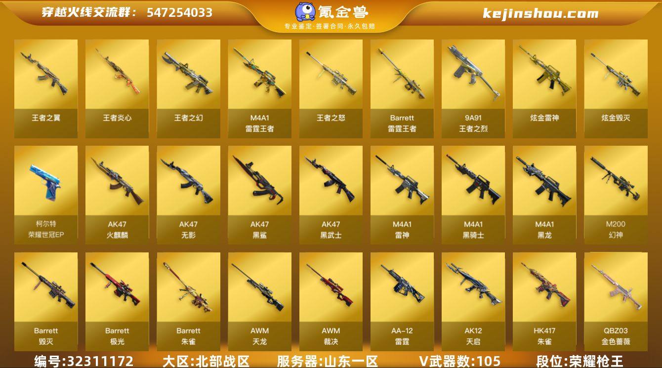 ★可协助解异地★ 山东一区105V29王者3炫金可排位/会员6/第二赛季荣耀枪王/荣耀世冠套/竞技荣光套/雷霆王者套/M200幻神+幻神冠军之幻皮肤+USP雷暴+屠龙+1套雷暴雷/王者幻神觉醒/M200竞技荣光+柯尔特竞技荣光+擎天竞技荣光+1套竞技荣光雷+电竞教官云悠悠/荣耀世冠火麒麟+荣耀世冠雷神+2把荣耀世冠柯尔特+2把荣耀世冠龙啸/M4青龙/HK417朱雀/白虎/Barrett朱雀/王者白虎/雷霆王者套装+1套雷霆王者雷/【四防】王者葵貂蝉/黑骑士音效卡/白虎音效卡/屠龙动感闪耀音效卡/毁灭音效卡/火麒麟音效卡/雷神烈虎/黑骑士摸金校尉/黑骑士伏羲/雷神-R.LGD-CFPLS18冠军/黑龙冠军之武/屠龙荣耀世冠AG/火麒麟荣耀世冠AG/雷神荣耀世冠AG/QBZ03-巅峰荣耀/毁灭CFS2018/火麒麟传奇EVEN/毁灭-SV-CFPLS16冠军/雷神传奇N9/黑骑士冠军之势/雷神冠军之魄/毁灭冠军之怒/火麒麟AG战队/天龙传奇白鲨/天龙传奇70KG/龙啸冠军之啸/雷神荣耀之魄/激光毁灭者3/神圣爆裂者3/巨龙咆哮3/CAT猫枪/牛牛AK/王者之心觉醒/王者之戮觉醒/王者之势觉醒/王者之烈/王者之决觉醒/王者之锋觉醒/乔伊教练/审判者/王者迷迭香/王者瞳闭月羞花/王者玲珑/修道士/云海玲珑/炫/烟雾保护头盔/闪光护目镜/AG战队炫彩背包/超级背包3-7+扩展背包...