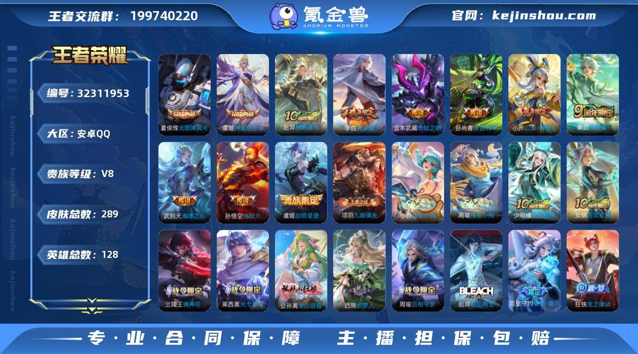 安卓Q-V7-最强王者段位-92英雄-96皮肤-13传说-21史诗【英雄全皮】:影全皮【传说皮肤】:韩信踏浪归,云缨神骥越千峰,关羽神骥镇沧海,朵莉亚神骥鸣幻洲,狄仁杰神骥赴朔漠,貂蝉神骥聚万邦,马超神骥逐星野,公孙离云诺千山,孙尚香异界灵契,后羿黄金射手座,李白凤求凰,孙尚香末日机甲,孙悟空地狱火【限定皮肤】:狄仁杰阴阳师,赵云皇家上将,嬴政白昼王子,孙尚香异界灵契,芈月重明,吕布猎兽之王,典韦穷奇,狄仁杰魔术师,项羽海滩派对,老夫子醍醐杖,孙悟空美猴王,孙悟空大圣娶亲,弈星混沌棋,明世隐疑决卦,裴擒虎李小龙,狂铁御狮,米莱狄御霄【年限皮肤】:孙悟空美猴王,李白凤求凰【赛季限定】:芈月重明,典韦穷奇,狂铁御狮,米莱狄御霄,弈星混沌棋,明世隐疑决卦,老夫子醍醐杖,亚瑟荣光之誓【战令限定】:嬴政白昼王子,吕布猎兽之王,周瑜线条小狗,小乔线条小狗【史诗皮肤】:周瑜线条小狗,小乔线条小狗,狂铁龙之律动,裴擒虎李小龙,娜可露露晚萤,狄仁杰鹰眼统帅,孙悟空大圣娶亲,孙策猫狗日记,嬴政白昼王子,诸葛亮黄金分割率,兰陵王暗隐猎兽者,吕布末日机甲,李白千年之狐,曹操幽灵船长,妲己魅力维加斯,孙尚香水果甜心,宫本武藏鬼剑武藏,狄仁杰魔术师,王昭君偶像歌手,赵云未来纪元,赵云皇家上将,露娜紫霞仙子【其他皮肤】:鲁班七号班班快跑,虞姬溯影追猎,亚瑟荣光之誓,影魅影绮裳,程咬金无双福将,老夫子醍醐杖,盾山圆桌骑士,明世隐疑决卦,哪吒次元突破,弈星混沌棋,小乔丁香结,庄周奇妙博物学,明世隐虹云星官,吕布猎兽之王,米莱狄御霄,项羽科学大爆炸,狂铁御狮,典韦穷奇,孙尚香沉稳之力,狂铁命运角斗场,芈月重明,王昭君幻想奇妙夜,钟无艳海滩丽影,刘备汉昭烈帝,狄仁杰阴阳师,后羿阿尔法小队,宫本武藏万象初新,花木兰兔女郎,孙悟空美...