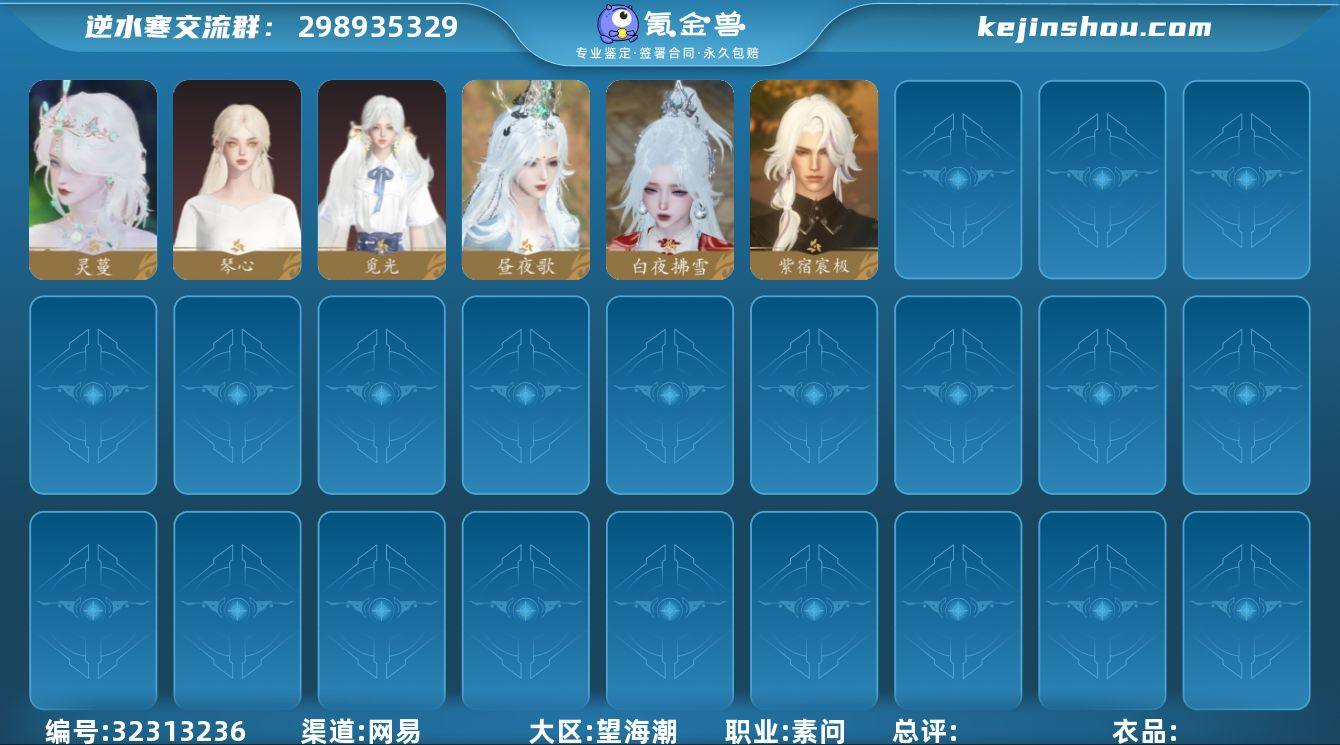 【3.22号换绑】战力值:73.96 总评:739679 角色等级:89 衣品值: 137085 国色值: 33850 已用天赏石:5 【网易手机账号】 【有换绑冷却】 【素问】 【女】 【4级】 【凭栏听雨】 【互通】 副本外观1 天赏外观5 副本外观:紫宿宸极; 天赏外观:樱漫,琴心,觅光,昼夜歌,灵蔓;【商城外观】 碎玉怜姻, 甜宙漫游, 巧影逐光, 裁花信, 夜雨倾澜, 修月碧海, 绯夜誓语, 雪团云绒, 天籁闻歌, 跃动心芒, 朔雪从风, 灼金喵影, 幽蝶眠花, 绯月狼舞, 绒粉美梦, 白夜俘获, 灵语星彩, 温语愈心, 空冥铃语, 云汉逢夕, 白露惑心, 玄喵夜行, 鳞骨逢幽, 贪狼摄星, 青林雀舞, 紫微御宵, 衣香鬓影, 混天焚莲, 逆鳞濯月, 曦照东晖, 金祷昼梦, 金粉绮梦, 烽火浮生, 皓雪冰临, 白灵雪魅, 墨隐千秋, 枫华九霄, 春江初晴