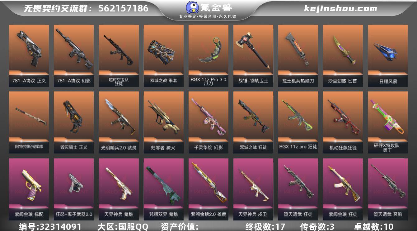 L2736 【性价比】莲花幻影 异形奥丁 781正义 显卡狂徒 超时空狂徒 归零獠犬 离子狂怒 紫金雄鹿 鬼丸国纲 双城套 天界戍卫 天界鬼魅 紫金标配 显卡爪刀 毁灭正义 堕天大狙 咒缚鬼魅 堕天狂徒 781幻影 盖亚之愠 紫金狂徒 砰砰奥丁 机动狂徒 哨兵骇灵库存: 43710剩余VP:614剩余R点:40 段位:未定级(白银)