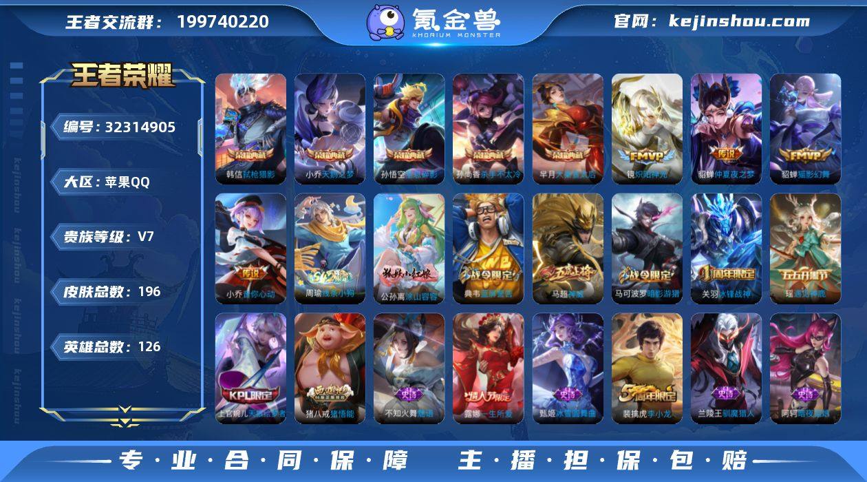 【aswz1609】苹果Q-V7-秩序白银II段位-126英雄-196皮肤-5典藏皮肤-4传说-54史诗 【荣耀典藏】:孙悟空全息碎影,小乔天鹅之梦,孙尚香杀手不太冷,芈月大秦宣太后,韩信弑枪猎影 【传说皮肤】:小乔音你心动,镜炽阳神光,貂蝉猫影幻舞,貂蝉仲夏夜之梦 【限定皮肤】:狄仁杰阴阳师,赵云皇家上将,墨子神迹守卫,嬴政优雅恋人,嬴政白昼王子,孙尚香蔷薇恋人,鲁班七号狮舞东方,阿轲迷踪丽影,芈月重明,吕布猎兽之王,周瑜赤莲之焰,夏侯惇朔风刀,典韦穷奇,典韦蓝屏警告,马可波罗暗影游猎,狄仁杰魔术师,狄仁杰万华元夜,达摩星际陆战队,达摩沙漠行僧,项羽海滩派对,老夫子醍醐杖,老夫子航海奇遇记,关羽冰锋战神,程咬金演武夺筹,露娜一生所爱,刘邦夺宝奇兵,兰陵王驯魔猎人,兰陵王金庭之子,牛魔御旌,李元芳银河之约,李元芳云中旅人,钟馗神迹守卫,钟馗驱傩正仪,杨玉环遇见飞天,女娲朔望之晖,雅典娜单词大作战,蔡文姬繁星吟游,鬼谷子原初探秘者,鬼谷子五谷丰年,苏烈千军破阵,百里玄策原初追逐者,弈星混沌棋,沈梦溪星空之诺,明世隐疑决卦,裴擒虎李小龙,裴擒虎擒涛扼浪,狂铁御狮,米莱狄御霄,米莱狄胡桃异想国,盾山御銮,猪八戒西部大镖客,...