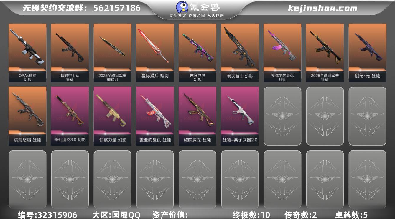 【WWC1618】终极*10/传奇*2/卓越*5/皮肤*46/等级*96/段位:黄金/2025全球冠军赛/幻棱/炼狱/维斯/暮蝶/钛狐/壹决/捷风/雷兹/幽影/不死鸟/贤者/猎枭/零/芮娜/尚勃勒/霓虹/斯凯/夜露/K/O/盖可/黑梦/钢锁/2025全球冠军赛 蝴蝶刀/近战武器-碎心裂刃/镭切/星际猎兵 短剑/2025全球冠军赛 狂徒/狂徒-洪荒怒焰/狂徒-创·纪元/多弥尔的复仇 狂徒/狂徒-超时空卫队/狂徒-盖亚的复仇/狂徒-耀鳞威龙/狂徒-离子武器2.0/幻影-毁灭骑士/幻影-末日泡泡/幻影-ORAx颗秒/幻影-侦察力量/幻影-奇幻朋克3.0/树懒大作战 卡面/无垠星环 卡面/《双城之战》金克丝 卡面/代号红色 卡面/新兵报到 卡面/V契约 卡面/无畏契约 卡面/小丑猫 喷漆/放下武器 喷漆/胜利属于无畏契约 喷漆/GLHF 喷漆/无畏契约 喷漆/动力机箱 挂饰/无畏契约 纪念币 挂饰