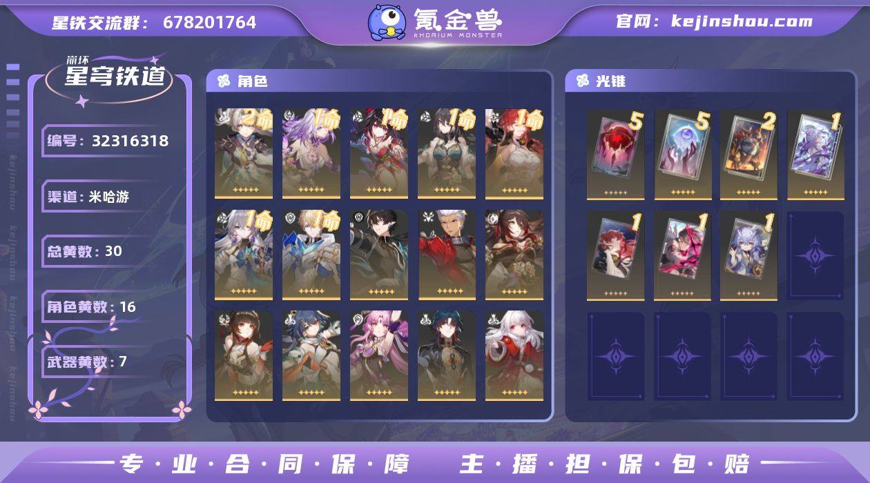 BTEPKS,女主,开拓等级 69,黄数 40,16个五星角色,7个五星光锥 ,949个星穹,0张星轨专票,2张星轨通票,22个四星角色,1命遐蝶,2命流萤,1命花火,0命忘归人,0命灵砂,0命Archer,0命刃,1命布洛妮娅,0命云璃,1命姬子