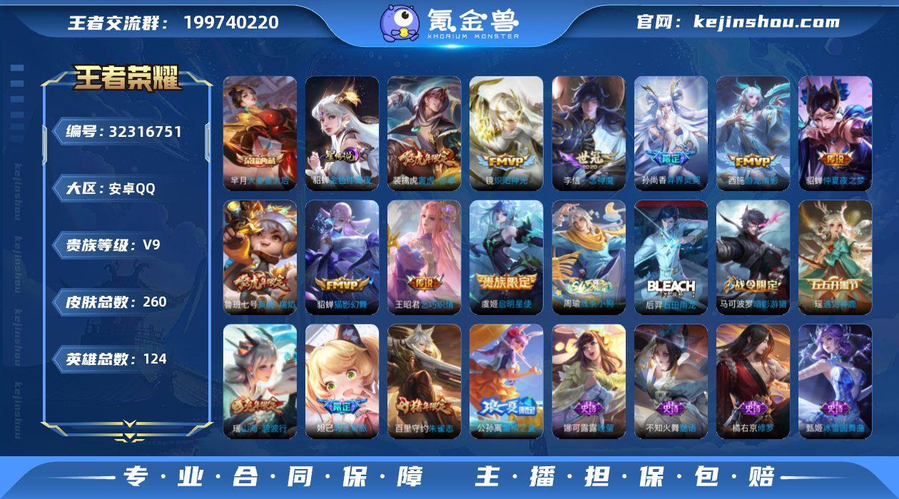 苹果Q-V7-最强王者段位-128英雄-264皮肤-1典藏皮肤-1珍品传说-11传说-75史诗【英雄全皮】:孙权全皮,敖隐全皮,暃全皮【荣耀典藏】:李白鸣剑曳影【珍品传说】:暃朽木白哉【传说皮肤】:马超神骥逐星野,澜愿照九州拓,云缨幻光神枪,裴擒虎祥瑞亨通,孙策乘龙淬吴钩,镜炽阳神光,伽罗太华,后羿黄金射手座,貂蝉仲夏夜之梦,李白凤求凰,宫本武藏地狱之眼【限定皮肤】:暃埋骨钱,狄仁杰阴阳师,赵云皇家上将,嬴政白昼王子,鲁班七号狮舞东方,高渐离死亡摇滚,阿轲迷踪丽影,芈月重明,吕布猎兽之王,周瑜赤莲之焰,元歌云间偶戏,元歌无心,夏侯惇朔风刀,曹操烛龙,典韦穷奇,典韦岱宗,马可波罗暗影游猎,狄仁杰魔术师,狄仁杰万华元夜,项羽海滩派对,老夫子醍醐杖,程咬金演武夺筹,刘邦夺宝奇兵,韩信飞衡,兰陵王驯魔猎人,孙悟空至尊宝,孙悟空大圣娶亲,牛魔御旌,李元芳银河之约,李元芳匿光侦查者,钟馗神迹守卫,钟馗驱傩正仪,杨玉环遇见飞天,蔡文姬繁星吟游,鬼谷子原初探秘者,铠青龙志,百里玄策原初追逐者,百里守约朱雀志,弈星混沌棋,沈梦溪星空之诺,明世隐疑决卦,裴擒虎李小龙,狂铁御狮,米莱狄御霄,云中君纤云弄巧,伽罗太华,盾山御銮,猪...