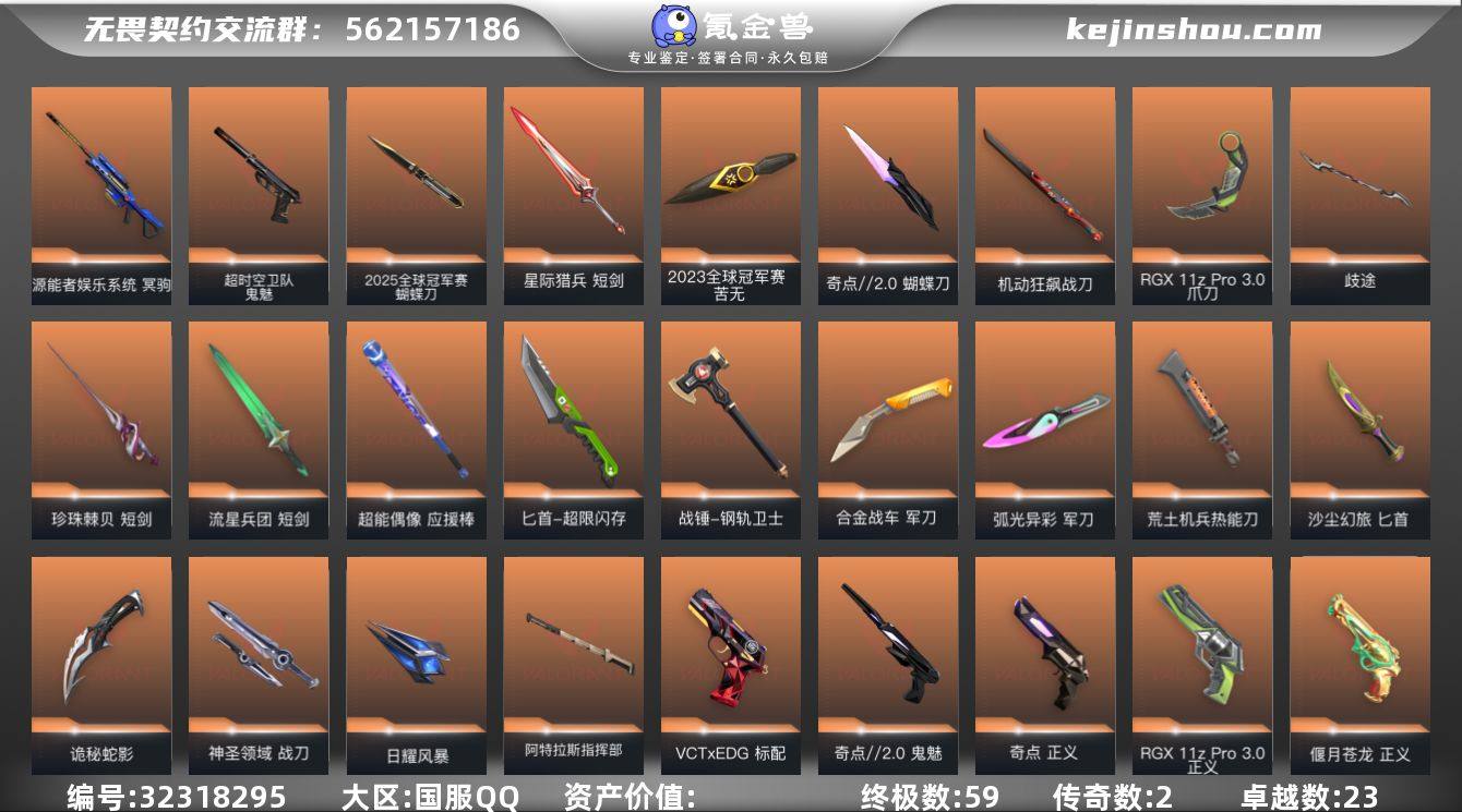 【WWQH384】终极*59/传奇*2/卓越*23/皮肤*258/等级*340/段位:超凡/离火刃套装/2025全球冠军赛/2023全球冠军赛套装/RGX 11z Pro//3.0套装/千灵华绽套装/奇点//2.0套装/偃月苍龙套装/VCTCN2025套装/耀鳞威龙套装/般若假面//2.0套装/无畏启程套装/幻棱/炼狱/维斯/暮蝶/钛狐/壹决/铁臂/捷风/雷兹/幽影/不死鸟/贤者/猎枭/蝰蛇/零/芮娜/奇乐/尚勃勒/霓虹/斯凯/夜露/星礈/K/O/海神/盖可/黑梦/钢锁/2025全球冠军赛 蝴蝶刀/苦无-2023全球冠军赛/光荣异象 歧途/剥皮小刀/蝴蝶刀-奇点//2.0/紫金爪刀/爪刀-RGX 11z Pro 3.0/离火刃/黑波之刃/落英飞旋/镭切/威龙之刃/鬼丸国纲/短剑-珍珠棘贝/短剑-流星兵团/超能偶像 应援棒/匕首-超限闪存/战锤-钢轨卫士/军刀-合金战车/军刀-弧光异彩/荒土机兵热能刀/机动狂飙战刀/街机高手/全息匕首/匕首-沙尘幻旅/天玄刀/偃月/夜刃诡镰/诡秘蛇影/神圣领域 战刀/日耀风暴/阿特拉斯指挥部/星际猎兵 短剑/2025全球冠军赛 狂徒/狂徒-2023全球冠军赛/狂徒-2021全球冠军赛/狂徒-混沌序曲/狂徒-奇点//2.0/狂徒-双城之战/狂徒-塑水宗/狂徒-偃月苍龙/狂徒-虚空遗器/狂徒-噬影者/狂徒-RGX 11z pro/狂徒-般若假面//2.0/狂徒-冰点凝冻/狂徒-盖世英雄/狂徒-盖亚的复仇/...