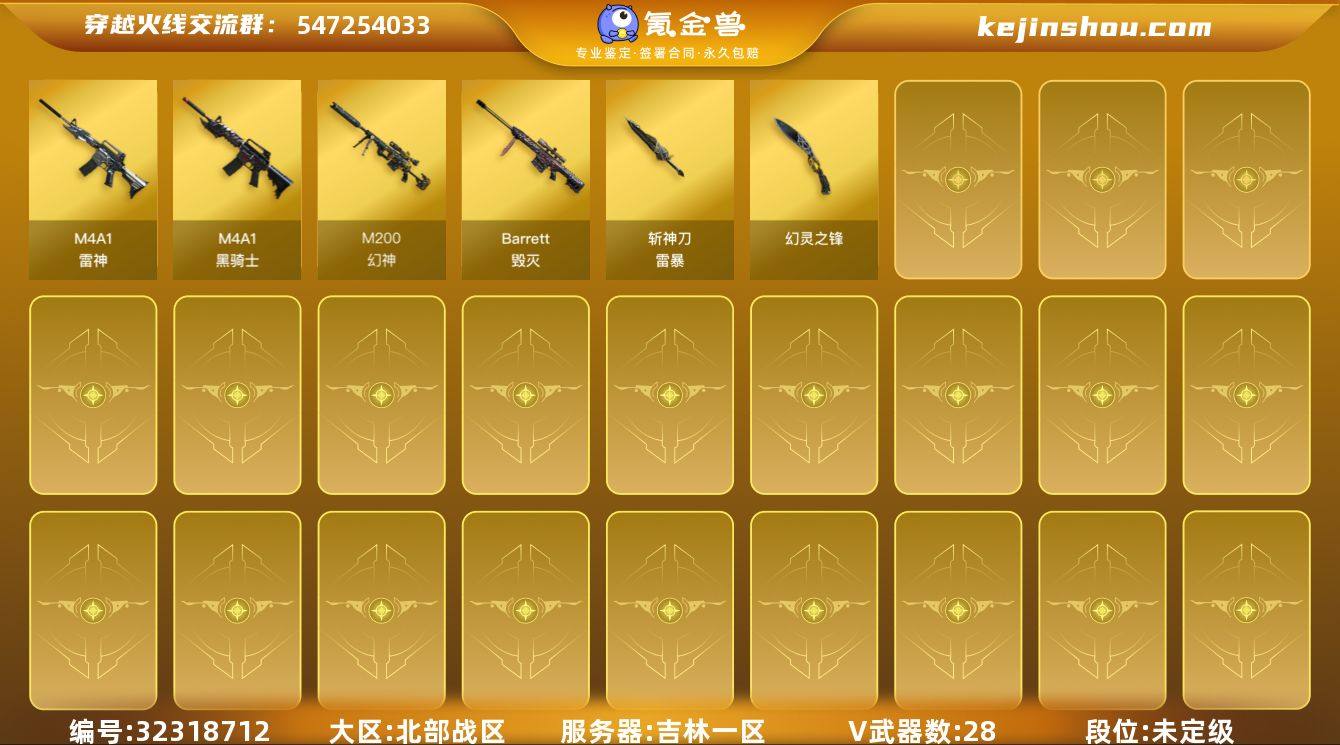 四川一区-49V-6王者武器数-0炫金武器数 【热门武器】:QBZ03-金色蔷薇,M14EBR-玄武,HK417-朱雀,M200-幻神,金色蔷薇-古蛇迷踪,修罗-古蛇迷踪,白虎-电玩蓝兔,羊驼玩偶,COP 357-幻灵,沙鹰-修罗*2 【音效卡】:M4A1-雷神-云海游龙音效卡,HK417-朱雀音效卡 【皮肤】:幻神-动感闪耀 皮肤,裁决-胜者为王 皮肤,雷神-宠儿-2019MVP,雷神-宇航兔皮肤,雷神-航星皮肤,M4A1-雷神-新春神龙皮肤,雷神-源计划2.0专属 皮肤,火麒麟-平天大圣,M4A1-千变-孔明皮肤,无影-暗月,战神-紫绶金章皮肤,战神-流金岁月皮肤,AK47-B-常胜将军-刘备,屠龙-春桃 皮肤,龙啸-青青莓果 皮肤 【角色】:王者潘多拉,蛇隐宗,奇洋探员,乔伊教练,云海玲珑,幻面灵狐,初恋灵狐,飞虎队-X,嘉年华灵狐,娟娟,猎狐者-追月,灵狐者-X,灵狐者-七夕宝贝,曼陀罗-X,潘多拉-X,潘多拉-甜心教官,蛇姬,兔囡囡,王者-零-传说之路,影武者-X,游珑儿 【人偶武器】:AWM-灵狐-15周年嘉年华,生化手雷-机甲核心,深渊终结者手雷,迷你超能女侍 【暴走生化】:超级对讲机 【挑战大师】:激光毁灭者III,神圣爆裂者-末日III 【英雄级武器】:M4A1-雷神*3,HK417-朱雀,M14EBR-玄武,无影-神兵利器,黑武士-锦绣游龙,超新星-热带奇洋,金色蔷薇-古蛇迷踪,QBZ03-金色蔷薇,烈火-动感闪耀,王者之圣-觉醒版,天启-悦智-觉醒版,AK47-B-战神*2,王者之城-觉醒版,黑骑士-海王,AK47-B-常胜将军,白虎-电玩蓝兔,HK417-朱雀-电竞之星,机械迷城-穹宇,AWM-裁决,M200-幻神,王者风神-觉醒版,Barrett-暗月传说,烈龙-云海游龙,沙鹰-修罗*2,沙鹰-天神,COP 357-幻灵,天神-动感闪耀,修罗-古蛇迷踪,屠龙,龙啸,屠龙-动感闪耀,擎天-云海游龙,龙啸-热带奇洋,屠龙-云海游龙,屠龙-电竞之星,龙啸-烈火龙威,高爆手雷-幻灵,手雷-动感闪耀,...