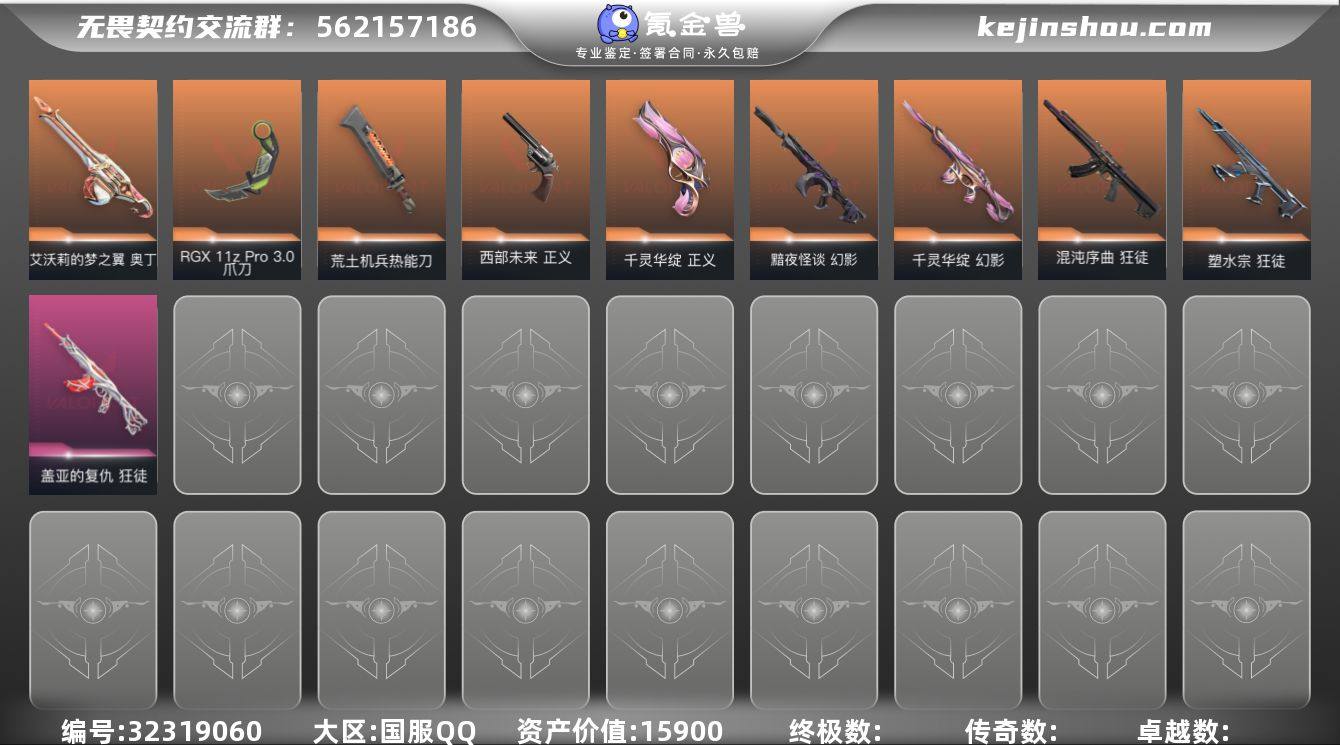 【套装】:RGX 11z Pro//2.0套装,般若假面//2.0套装 【英雄】:幻棱,炼狱,维斯,暮蝶,钛狐,壹决,铁臂,捷风,雷兹,幽影,不死鸟,贤者,猎枭,蝰蛇,芮娜,奇乐,尚勃勒,霓虹,斯凯,夜露,星礈,K/O,盖可,黑梦,钢锁 【近战武器】:近战武器-RGX 11z Pro//2.0 蝴蝶刀,近战武器-紫金爪刀,近战武器-鬼丸国纲,近战武器-荒土机兵 热能刀 【狂徒】:狂徒-般若假面//2.0,狂徒-海洋之星,狂徒-荒土机兵 【幻影】:幻影-RGX 11z Pro//2.0,幻影-侦察力量,幻影-纳米打击 【戍卫】:戍卫-逆冲蛮牛 【獠犬】:獠犬-般若假面//2.0,獠犬-逆冲蛮牛 【冥驹】:冥驹-RGX 11z Pro//2.0,冥驹-荒土机兵 【战神】:战神-般若假面//2.0 【奥丁】:奥丁-纳米打击 【判官】:判官-纳米打击x 【雄鹿】:雄鹿-紫阙金琅//2.0,雄鹿-逆冲蛮牛 【骇灵】:骇灵-RGX 11z Pro//2.0,骇灵-荒土机兵 【标配】:标配-RGX 11z Pro//2.0,标配-荒土机兵 【正义】:正义-纳米打击 【鬼魅】:鬼魅-盖亚的复仇 【狂怒】:狂怒-般若假面//2.0,狂怒-逆冲蛮牛 【卡面】:终章:激斗汉堡 卡面,进入射程 卡面,分崩离析 卡面,纳米打击 卡面,抑制技术 卡面,激斗汉堡 卡面,瓦娃脸雪糕 P2 卡面,从黄昏到黎明 卡面,荒土机兵 卡面,银弹猎手 卡面,逆冲蛮牛 卡面,《双城之战》拥抱 卡面,精灵大战 卡面,欢迎来到底城 卡面,南瓜盛典 卡面,正义的化身 卡面,最高舞台 卡面,树懒大作战 卡面,梦幻奶茶 卡面,源能反应 卡面,零点嗅探设计图 卡面,沙雕爆能器 卡面,无畏契约GO!第一卷:芮娜 卡面,清除名单 卡面,无畏契约GO!第一卷:零 卡面,暗枪 卡面,钢锁vs盖可 卡面,铁臂设计图 卡面,代号红色 卡面,冰淇淋店 卡面,新兵报到 卡面,友军火力 卡面,V契约 卡面,无畏契约 卡面 【喷漆】:小小心意 喷漆,战“素”兔 喷漆,宇宙的...