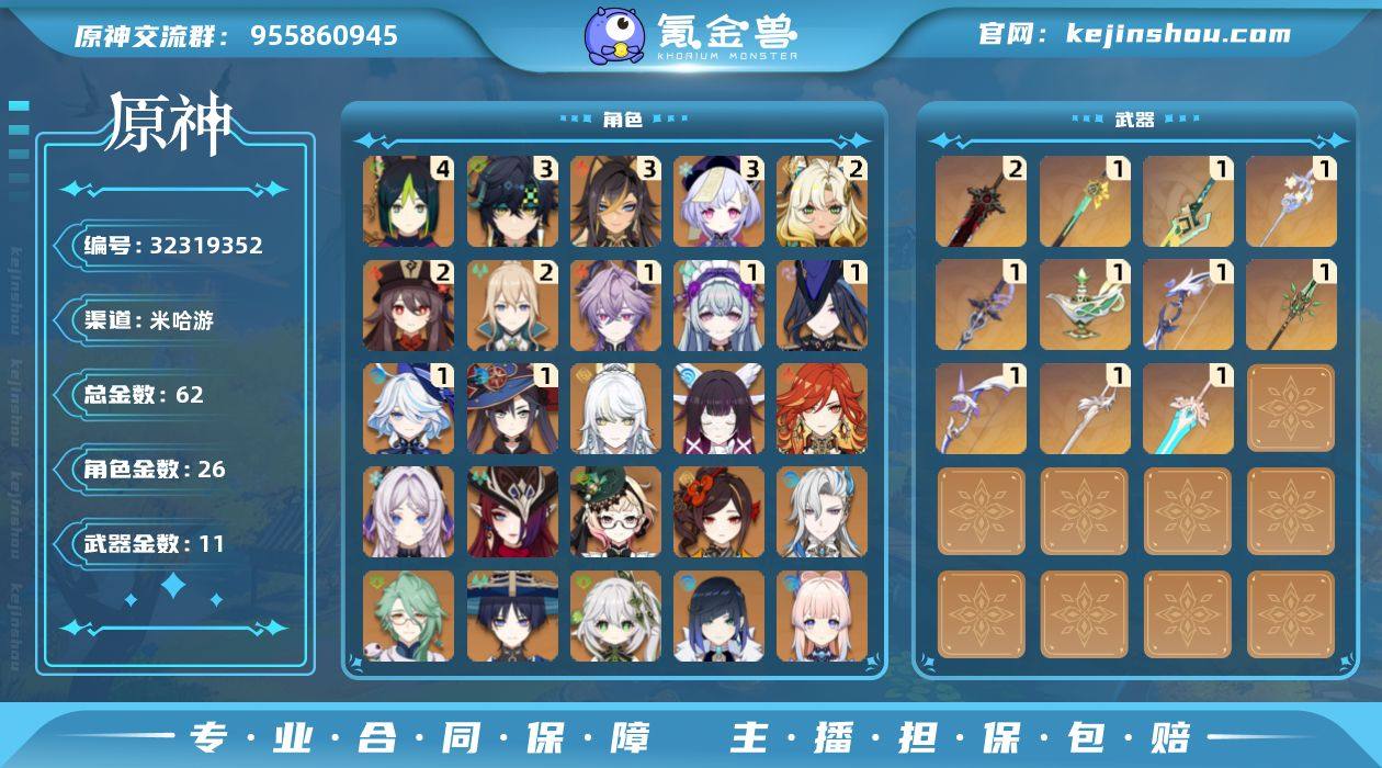 高练度号人均215分套系圣遗物,多命座武器,资源多质量高天赋都拉到了皇冠安全可靠还有一个胡桃限定年皮