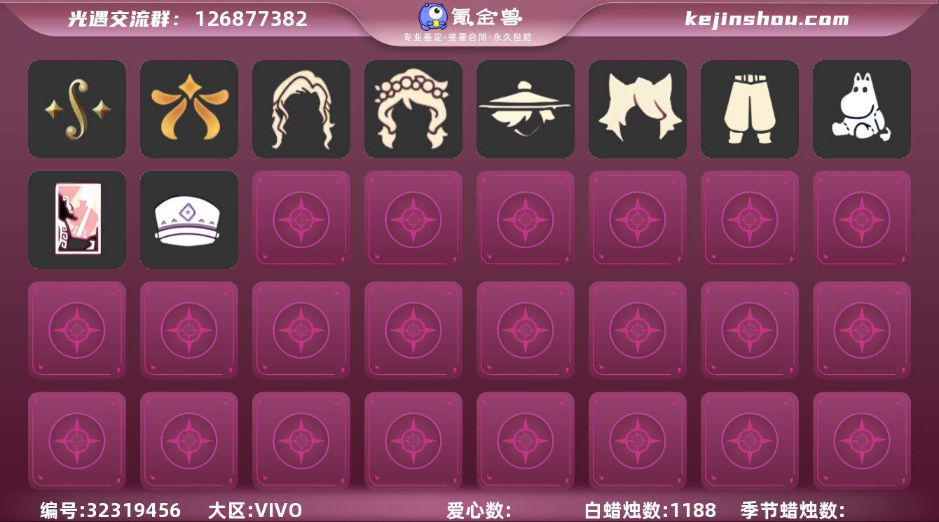 蜡烛数:1188/爱心数:2/霞谷/二重奏季/姆明大伞/姆明抱枕/欧若拉之翼/武士裤/虚荣/花环/若笠/平顶帽/白金斗篷/猫耳/花环长发/二重奏挂画