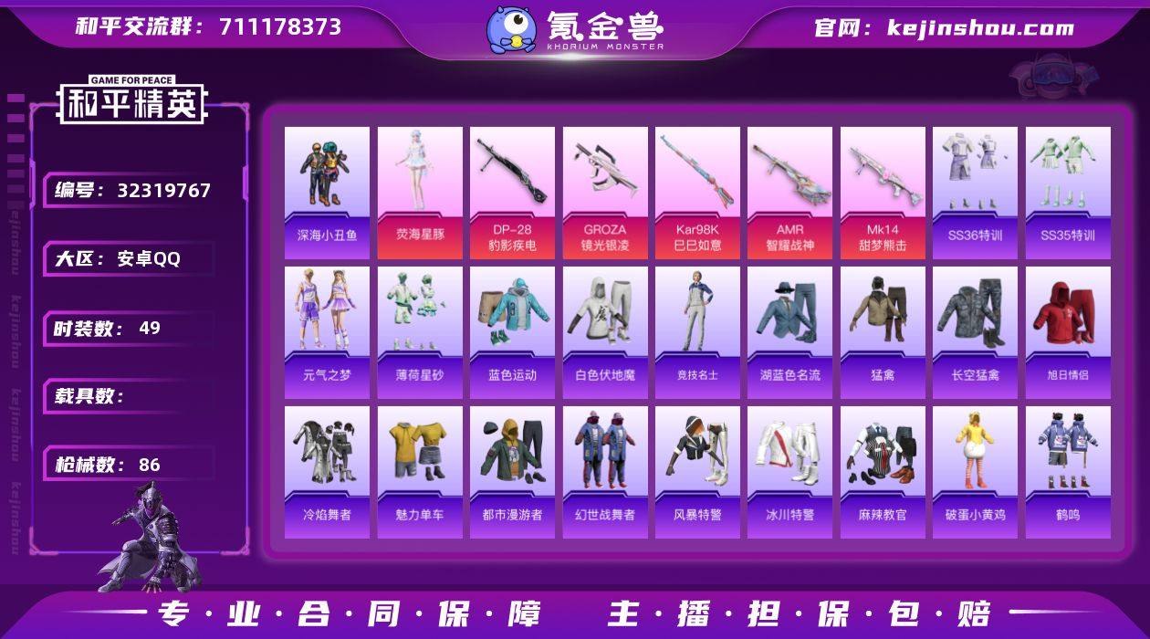 可二次实名【4特效枪1粉装 秒换绑不用等】 安卓Q区-21396热力值-2印记-53套装-77枪皮 【1粉装】 星之彼岸【4特效枪】 Mk14-福马献瑞(5级) ACE32-萌骑漫游(5级) Kar98K-巳巳如意(5级) DP-28-豹影疾电(5级)【96热门】 破蛋小黄鸡 白色伏地魔 SCAR-L-玉兔迎春 DBS-彩虹符号 MG3-幻世战舞者 M416-蓝色火焰 长空猛禽 魅力单车 蓝色运动 黄色运动 黄色伏地魔 红色运动 黑色伏地魔 海岛探路者 S1897-糯团青竹 AA12-G-雨过天青 沙漠之鹰-雨过天青 P90-紫矿核心 M16A4-雨过天青 AC-VAL-玩趣呆呆 顶瓜瓜 M249-无面战甲 白辉玉蕊 雨过天青 MG-36-薄荷星砂 GROZA-福马献瑞 恋语绒绒 SS34特训 霜纹水星 漫游都市 蜜獾-鸡智如我 撬棍-冰晶雪宝 福马献瑞 大橘大利 M200-罪夜之冕 DBS-辉云木星 SS29特训 SS30特训 ACE32-冰晶雪宝 P1911-无面战甲 青翼流星 PKM-啾咪啾咪 M16A4-冰河战士 SS31特训 SS33特训 SS32特训 巳巳如意 绯色魅影 游乐 SS36特训 异域银装 智谋强哥 战术大师 蜜獾-启元战纹 马上有钱 突击盾牌-虎痴许褚 蜜獾-虎痴许褚 狙击之神 破片手榴弹-海盐豹豹 UMP45-海盐豹豹 QBU-未来领航者 Mk14-薄荷星砂 AUG-紫晶流影 AMR-鸡智如我 AMR-喜羊羊与灰太狼 燃烧瓶-福马献瑞 Mk14-冰河战士 GROZA-海盐豹豹 Mini14-香桃花海 破片手榴弹-巳巳如意 AKS-74U-鸡智如我 UZI-冰河战士 M249-绯穹魔姬 SS35特训 薄荷星砂 蝶变 破片手榴弹-星途旅人 霓虹热舞 元气之梦 VSS-香桃花海 AUG-异域银装 十字弩-异域银装 信号枪-异瞳寒姬 SLR-霓彩脉冲 UZI-炫彩糖果 电击枪-喜羊羊与灰太狼 Mini14-鸡智如我 P90-巳巳如意 S686-巳巳如意 萌鸡速递 云魄琉璃 SS37特训 AMR-雨过天青 PKM-雨过天青 红釉青花