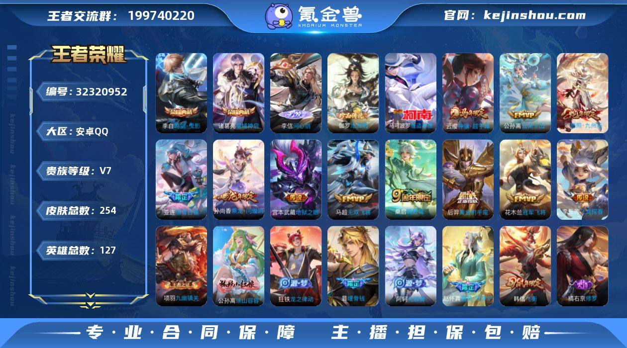 【王者荣耀】珍品无双0 典藏2 无双1 珍品传说2 传说11 史诗63 英雄127 皮肤254 贵族7级 荣耀典藏:鸣剑·曳影|星域神启__无双皮肤:问心剑__珍品传说:怪盗基德|沧流箭__传说皮肤:鸣野蒿|无双飞将|地狱之眼|黄金射手座|冠军飞将|飞鸢探春|落雪白狼|乘龙·问璇玑|愿照·九州拓|云诺千山|神骥·越千峰__稀有限定:飞衡|李小龙|梁祝|拒霜思|百解令|大漠名商|高山流水|古海寻踪|海滩派对|海盐诗旅|华丽摇滚|皇家上将|混沌棋|剑破天穹|金庭之子|黎明之约|魔术师|女武神|千军破阵|擒涛扼浪|穷奇|驱傩正仪|荣光圣徽|沙漠行僧|朔风刀|探海日志|饕餮|醍醐杖|天穹祈灯|玩趣恶龙|万华元夜|无心|五谷丰年|疑决卦|阴阳师|驭风魔法|御旌|御銮|御狮|原初追逐者|逐梦之影|缤纷独角兽|冰雪圆舞曲|乘风破浪|德古拉伯爵|地狱岩魂|功夫厨神|鬼剑武藏|黄金分割率|节奏热浪|金属风暴|李元芳-蔬乡物语|吕布-末日机甲|魅力维加斯|梦奇-顽趣|女仆咖啡|赏金猎手|圣诞恋歌|鲁班七号-蔬乡物语|水果甜心|水晶猎龙者|孙策-猫狗日记|天才门将|赵云-未来纪元|星夜王子|摇滚巨星|鹰眼统帅|永昼|幽灵船长|逐浪之夏|紫霞仙子|噬灭天穹|破空之剑|埋骨钱|天穹之誓|海诺-心动手记|修罗|心灵战警|千年之狐|无限星赏官|舞动绿茵...
