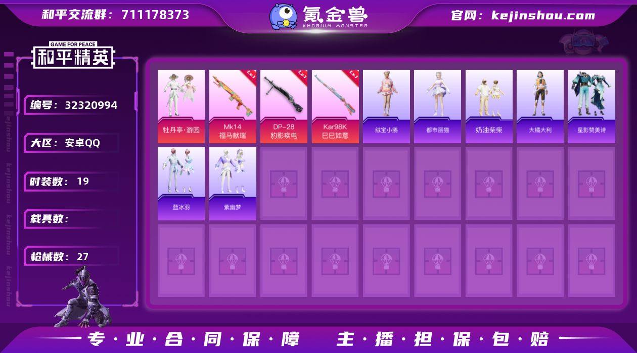 M1046858有二次【连体号 68英雄 有敖隐 69皮肤 6传说 20史诗 V4】 安卓手Q-1粉装-3特效枪-19套装-27枪皮-0王牌印记-坚韧铂金Ⅰ-7620热力值【1粉装】牡丹亭·游园【3特效枪】Mk14-福马献瑞[3级],DP-28-豹影疾电[2级],Kar98K-巳巳如意[3级]【1飞行器】牡丹亭・游园飞行器【42其它衣服和枪皮】薄荷星砂,战术大师,蓝冰羽,完美偶像,狙击之神,紫幽梦,长空猛禽,绒宝小鹅,马上有钱,福马献瑞,海盐绵绵冰,角色-都市丽猫,SS37特训,角色-瑰梦爱神,奶油柴柴,青涩时光,大橘大利,星影赞美诗,PKM-紫幽梦,GROZA-福马献瑞,S1897-紫幽梦,平底锅-紫幽梦,UZI-炫彩糖果,信号枪-异瞳寒姬,蝎式手枪-虹云熊熊,P92-紫幽梦,MG3-霓彩脉冲,Mk14-紫幽梦,AUG-紫晶流影,平底锅-空岛之星,平底锅-许七安,SCAR-L-炫彩节奏,MG3-智耀战神,UZI-天降萌叽,MG3-幻世战舞者,铝热弹-炫彩糖果,SKS-炫彩节奏,汤姆逊-像素花束,Vector-荒原烈焰,UMP45-绒宝小鹅,SLR-乌木金纹,蜜獾-乌木金纹