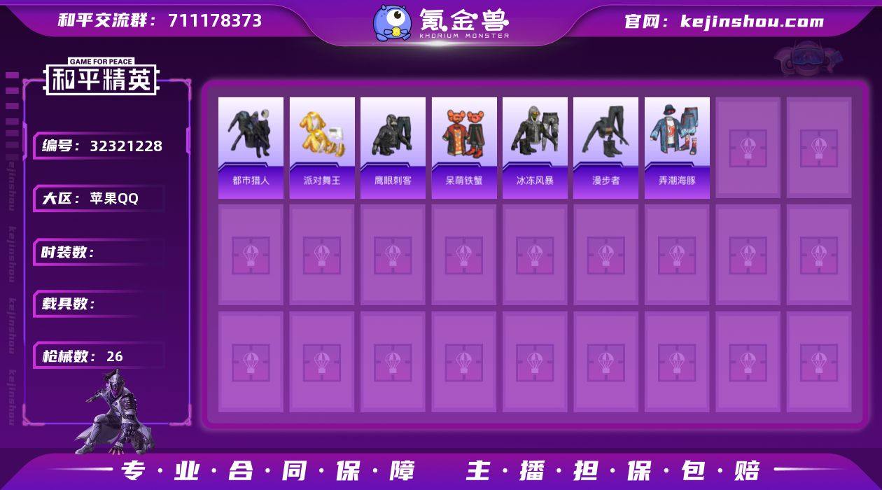 M1046864【身法号2特效枪 都市猎人 派对舞王】无二次包 苹果手Q-2特效枪-16套装-26枪皮-0王牌印记-荣耀皇冠Ⅲ-5822热力值【2特效枪】Mk14-福马献瑞[5级],ACE32-萌骑漫游[2级]【3稀有】派对舞王,都市猎人,AKM-缤纷海域【1头盔】金羽特工头盔【2背包】金羽特工背包,深海小丑鱼背包【37其它衣服和枪皮】龙魂突击队,冰冻风暴,SS37特训,马上有钱,街头潮人,福马献瑞,呆萌铁蟹,阳光火鸡,漫步者,鹰眼刺客,弄潮海豚,雨过天青,红釉青花,狙击之神,GROZA-影袭,M416-糯团青竹,Kar98K-影袭,AA12-G-雨过天青,UMP45-夜灯,MG3-火熔核心,M249-糯团青竹,AUG-耀粉歌者,蜜獾-天降萌叽,AMR-雨过天青,蜜獾-启元战纹,GROZA-福马献瑞,AC-VAL-荒原烈焰,PKM-雨过天青,汤姆逊-像素花束,M16A4-雨过天青,M24-影袭,SKS-迅猛狂鲨,P90-玩趣呆呆,AKM-影袭,沙漠之鹰-雨过天青,UZI-影袭,SLR-乌木金纹