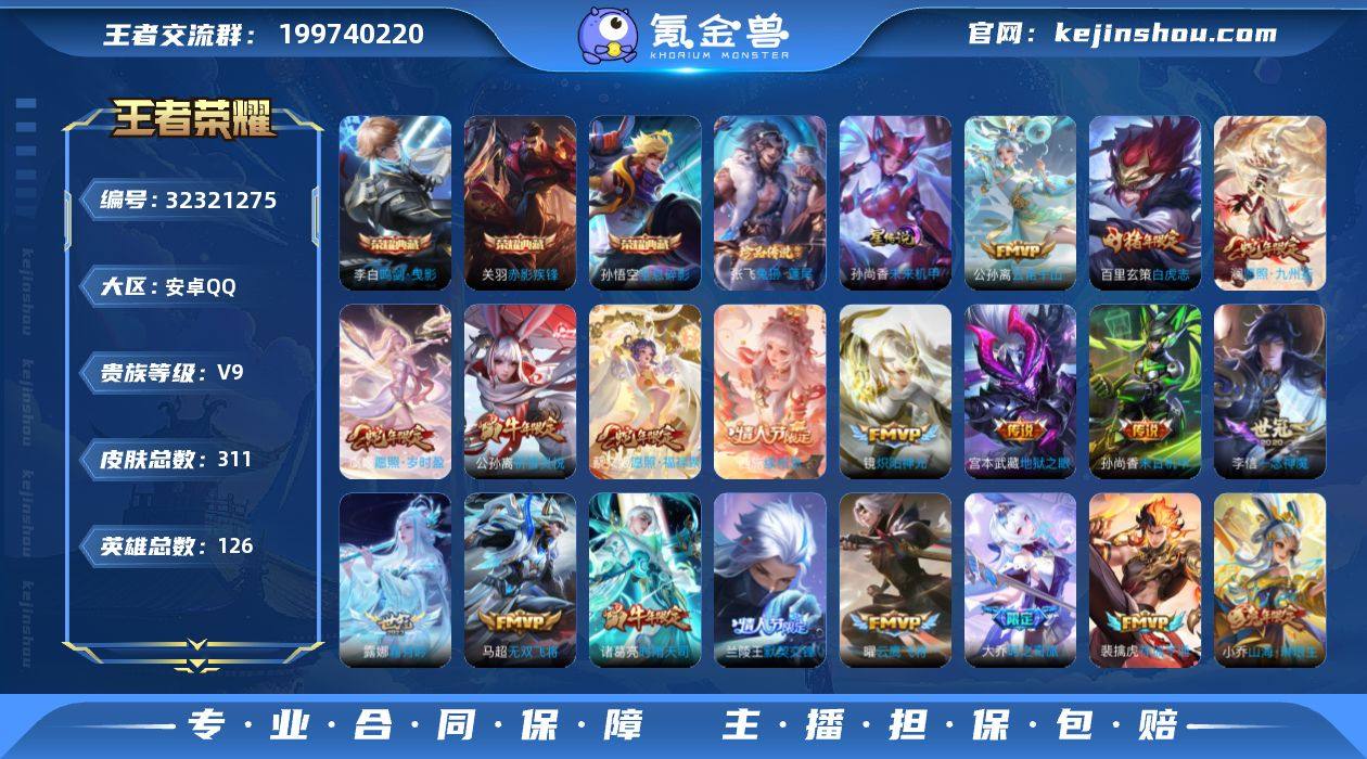 【WZ181332】安卓Q-V9-最强王者段位-126英雄-311皮肤-3典藏皮肤-2珍品传说-31传说-86史诗【英雄全皮】:金蝉全皮【荣耀典藏】:孙悟空全息碎影,李白鸣剑曳影,关羽赤影疾锋【珍品传说】:伽罗沧流箭,张飞兔狲蓬尾【传说皮肤】:狄仁杰神骥赴朔漠,公孙离云诺千山,西施续相思,澜愿照九州拓,蔡文姬愿照福禄聚,虞姬愿照岁时盈,云缨幻光神枪,裴擒虎祥瑞亨通,王昭君映山客,桑启鸣野蒿,露娜霜月吟,大乔时之奇旅,小乔山海琳琅生,马超无双飞将,周瑜音你心动,兰陵王默契交锋,公孙离祈雪灵祝,诸葛亮时雨天司,镜炽阳神光,虞姬启明星使,孙悟空零号赤焰,曜云鹰飞将,李信一念神魔,刘备时之恋人,张良黄金白羊座,干将莫邪久胜战神,百里玄策白虎志,貂蝉仲夏夜之梦,孙尚香末日机甲,宫本武藏地狱之眼,狄仁杰超时空战士【限定皮肤】:姜子牙天穹之誓,狄仁杰阴阳师,小乔山海琳琅生,赵云皇家上将,赵云引擎之心,赵云龙胆,庄周云端筑梦师,阿轲迷踪丽影,芈月白晶晶,吕布御风骁将,周瑜真爱至上,元歌云间偶戏,元歌无心,夏侯惇朔风刀,曹操烛龙,典韦穷奇,典韦蓝屏警告,马可波罗暗影游猎,狄仁杰魔术师,狄仁杰万华元夜,达摩沙漠行僧,项羽海滩派对,项羽...