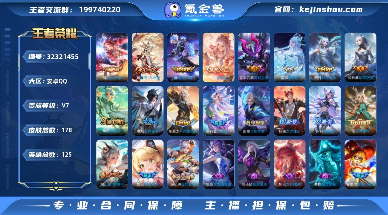 安卓Q-V8-永恒钻石III段位-126英雄-279皮肤-1典藏皮肤-25传说-67史诗 【英雄全皮】:孙权全皮,李信全皮 【荣耀典藏】:貂蝉幻阙歌 【传说皮肤】:桑启鸣野蒿,公孙离记忆之芯,伽罗炽翼辉光,小乔山海琳琅生,李信山海炽霜斩,吕布怒海麟威,不知火舞绯月行,百里守约碎云,马超无双飞将,赵云淬星耀世,王昭君乞巧织情,周瑜音你心动,李元芳飞鸢探春,铠绛天战甲,镜炽阳神光,虞姬启明星使,李信一念神魔,刘备时之恋人,貂蝉猫影幻舞,虞姬云霓雀翎,梦奇胖达荣荣,后羿黄金射手座,孙尚香末日机甲,宫本武藏地狱之眼,狄仁杰超时空战士 【限定皮肤】:姜子牙天穹之誓,狄仁杰阴阳师,小乔山海琳琅生,赵云皇家上将,庄周高山流水,阿轲迷踪丽影,吕布猎兽之王,元歌无心,马可波罗山海玄木吟,狄仁杰魔术师,达摩沙漠行僧,项羽海滩派对,关羽冰锋战神,王昭君午后时光,兰陵王金庭之子,不知火舞绯月行,李元芳云中旅人,虞姬启明星使,钟馗神迹守卫,杨戬潮玩骑兵,太乙真人华丽摇滚,鬼谷子五谷丰年,百里守约朱雀志,沈梦溪大漠名商,裴擒虎擒涛扼浪,狂铁电玩高手,云中君纤云弄巧,李信山海炽霜斩,伽罗炽翼辉光,嫦娥拒霜思,嫦娥暖冬兔眠,盘古冰霜神祇,桑启海盐诗旅,暃星界游侠,艾琳流音漫舞,司空震地狱燃心,阿古朵江河有灵,张良古海寻踪,蒙犽百解令,高渐离燃音魔法,妲己灵卜魔法,鬼谷子天穹祈灯,伽罗琥珀纪元,姬小满妄想食味,沈梦溪龙舞盛年,鲁班七号蔬乡物语,李元芳蔬乡物语,刘邦剑破天穹,程咬金群星魔术团,镜青焰无极,项羽苍威无极,刘备异域游侠,芈月浮光幕影,周瑜熔金海岸 【年限皮肤】:百里守约朱雀志,小乔山海琳琅生,李信山海炽霜斩,马可波罗山海玄木吟 【赛季限定】:达摩沙漠行僧,兰陵王金庭之子,沈梦溪大漠名商,李元芳云中旅人,桑启海盐诗旅,裴擒虎擒涛扼...