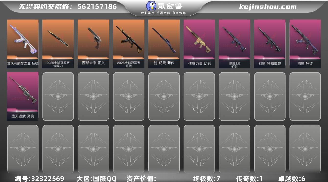 【933770】[17591903]7橙皮 1金皮 6紫皮 48皮肤 19英雄 61卡面 560已用源晶 黄金段位 【套装】2025全球冠军赛 【近战武器皮肤】星际猎兵 短剑,碎心裂刃,蒙太奇 战斧,2025全球冠军赛 蝴蝶刀 【佩枪皮肤】蒙太奇 狂怒,正义-西部未来,超集系统 标配,风暴之子 正义,追猎-掠影//3.0 【冲锋枪皮肤】蒙太奇 骇灵 【霰弹枪皮肤】风暴之子 雄鹿 【步枪皮肤】幻影-异鳞魔蛇,狂徒-掠影,风暴之子 戍卫,蒙太奇 幻影,超集系统 狂徒,2025全球冠军赛 狂徒,幻影-掠影2.0,狂徒-艾沃莉的梦之翼,幻影-侦察力量 【狙击枪皮肤】莽侠-创·纪元,风暴之子 冥驹,冥驹-堕天遗武,超集系统 飞将 【机枪皮肤】蒙太奇 战神 【挂饰】2025全球冠军赛挂饰,风暴之子 挂饰,V26第一幕纪念币 挂饰,协议假人 挂饰,超集系统 挂饰,H2-Oh!挂饰,无畏契约GO!第一卷奇乐挂饰,无畏契约GO!第一卷捷风挂饰,无畏契约GO!第一卷零挂饰