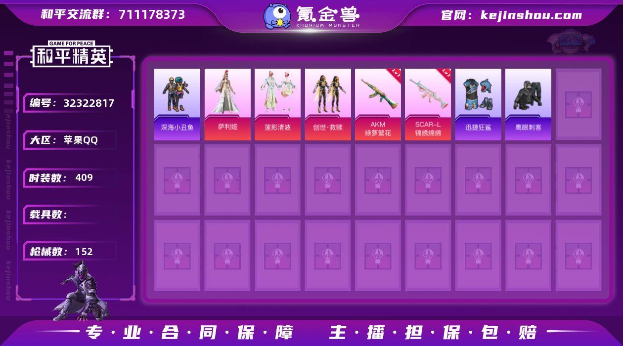 【稀有枪皮】Kar98K-巳巳如意,SVD-月影灵韵,AA12-G-萌骑幻想,DP-28-豹影疾电,AKM绿萝繁花,SCAR-L-锦绣绵绵