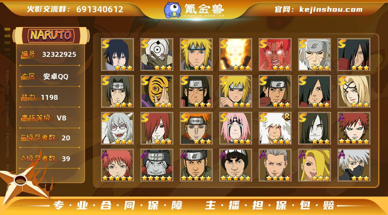 【129】20S级忍者数-39A级忍者数 【S级忍者】:长门「秽土转生」(3星),波风水门「秽土转生」(3星),千手扉间「秽土转生」(3星),千手柱间「秽土转生」(3星),宇智波斑「秽土转生」(3星),春野樱「忍界大战」(3星),宇智波鼬「须佐能乎」(3星),自来也「舞之豪杰」(3星),大蛇丸(3星),纲手「百豪」(3星),千手柱间(3星),宇智波斑(3星),波风水门(3星),药师兜「仙人模式」(3星),神秘面具男(3星),漩涡鸣人「九喇嘛连结」(3星),迈特凯「死门」(3星),佩恩「天道」(3星),宇智波佐助「永恒万花筒」(3星),宇智波斑 「白面具」(3星宇智波斑「白面具」) 【A级忍者】:艾「青年」(2星),长门「青年」(2星),波风水门「青年」(2星),达鲁伊「博人传」(2星),迪达拉(3星),迪达拉「秽土转生」(3星),大蛇丸「晓」(2星),奇拉比(2星),奇拉比「忍界大战」(2星),飞段(4星),飞段「死司凭血」(3星),干柿鬼鲛(5星),漩涡鸣人「仙人模式」(2星),漩涡鸣人「九尾查克拉」(2星),迈特凯(5星),旗木卡卡西「万花筒写轮眼」(3星),我爱罗「疾风传」(5星),我爱罗「忍界大战」(2星),蝎(5星),小南(2星),角都「晓创生」(2星),猿飞阿斯玛(5星),猿飞阿斯玛「秽土转生」(2星),宇智波止水...