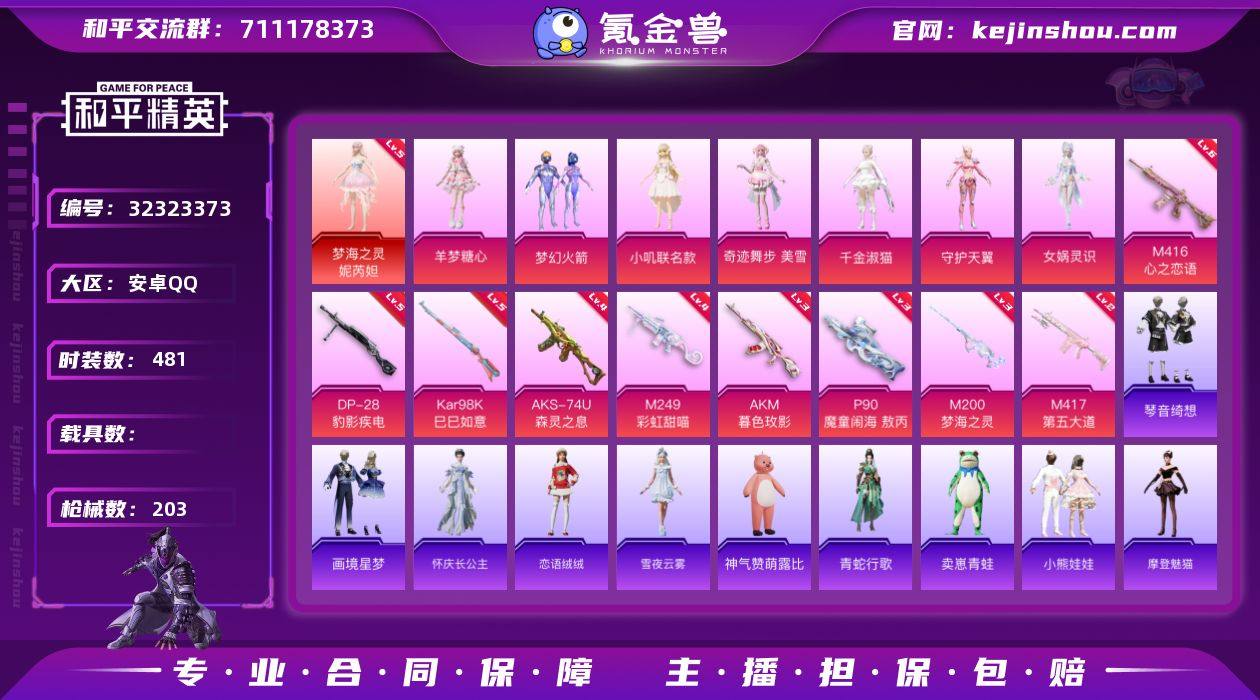 【特价出售】钱包不能注销安卓Q-1红装1载具7粉装8特效枪10热门136套装203枪皮 70209热力值 6印记 历史传奇王牌11星 【1红装】 梦海之灵-妮芮妲 (5级) 【1载具】 僚机-冰龙团团 【7粉装】 梦幻火箭 女娲灵识 奇迹舞步美雪 千金淑猫 小叽联名款 守护天翼 羊梦糖心 【8特效枪】 M416-心之恋语 (6级) P90-魔童闹海敖丙 (3级) AKS-74U-森灵之息 (4级) Kar98K-巳巳如意 (5级) DP-28-豹影疾电 (5级) M200-梦海之灵 (3级) M417-第五大道 (2级) M249-彩虹甜喵 (4级) 【10热门】 Mark.06 奇迹天团 晶辉守护 奇迹天团 团圆交子 瑞龙福将 粉红小猪 破蛋小黄鸡 M762-瑞龙福将 Mini14-林间仙鹿 【2飞行器】 幻海精灵飞行器 天之羽翼飞行器 【1头盔】 甜蜜誓约头盔 【1背包】 梦幻火箭背包