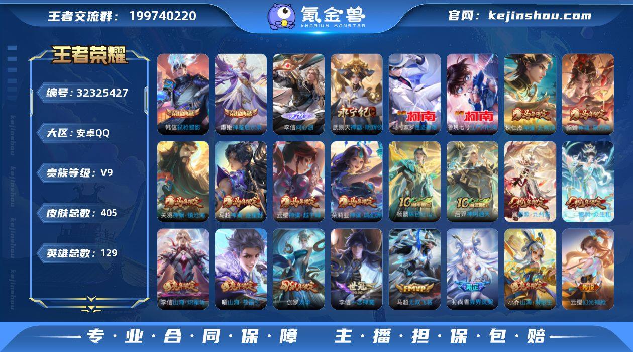【Hwz811】【特价出售】安卓Q-V9-可二次-36按键-墨上江山天幕-129英雄-405皮肤-2典藏皮肤-1典藏英雄-2无双-2珍品传说-34传说-111史诗(马年限定全套、兔年限定全套、弑枪猎影、神鉴启示录、江户川柯南、怪盗基德) 【英雄全皮】:廉颇全皮,孙权全皮,狂铁全皮,李信全皮,猪八戒全皮,敖隐全皮,空空儿全皮,影全皮 【荣耀典藏】:武则天英雄,韩信弑枪猎影,虞姬神鉴启示录 【无双皮肤】:李信问心剑,武则天神器明辉仪 【珍品传说】:鲁班七号江户川柯南,马可波罗怪盗基德 【传说皮肤】:云缨神骥越千峰,关羽神骥镇沧海,朵莉亚神骥鸣幻洲,狄仁杰神骥赴朔漠,貂蝉神骥聚万邦,马超神骥逐星野,杨戬纵目迁山,后羿神树通天,妲己愿照众生和,澜愿照九州拓,云缨幻光神枪,王昭君映山客,桑启鸣野蒿,东皇太一灼幽烈阳,干将莫邪画中仙,孙悟空齐天大圣,小乔山海琳琅生,曜山海苍雷引,李信山海炽霜斩,吕布怒海麟威,李白诗剑行,狄仁杰神器狴犴令,王昭君星穹之声,马超无双飞将,鲁班七号寅虎瑞焰,孙尚香异界灵契,貂蝉遇见胡旋,赵云淬星耀世,虞姬启明星使,李信一念神魔,伽罗太华,虞姬云霓雀翎,花木兰冠军飞将,后羿黄金射手座 【限定皮肤】:白起狰,狄仁杰阴...