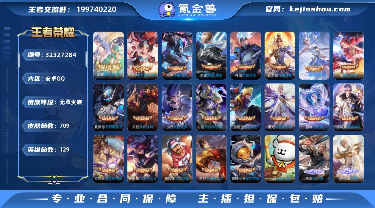 安卓Q-V11-最强王者段位-126英雄-609皮肤-6典藏-0珍品无双-7无双-7珍品传说-87传说-225史诗 【荣耀典藏】:武则天英雄,武则天倪克斯神谕,小乔天鹅之梦,诸葛亮星域神启,花木兰九霄神辉,貂蝉幻阙歌,伽罗最初的交响 【无双皮肤】:妲己青丘九尾,瑶真我赫兹,小乔时之魔女,不知火舞花合斗,公孙离离恨烟,甄姬雪境奇遇,曜器灵螭龙剑 【珍品传说】:马可波罗怪盗基德,鲁班七号江户川柯南,孙策时之奇旅,嫦娥器灵落星盏,张飞兔狲蓬尾,瑶大耳狗之梦,安琪拉酷洛米之心 【传说皮肤】:公孙离云诺千山,西施续相思,杨玉环星之鸣奏,后羿千劫归真,司空震愿照山河定,女娲愿照千秋盛,妲己愿照众生和,澜愿照九州拓,蔡文姬愿照福禄聚,虞姬愿照岁时盈,云缨幻光神枪,裴擒虎祥瑞亨通,嬴政玄雷天君,桑启鸣野蒿,庄周牧神诗旅,朵莉亚心动手记,海月金乌负日,貂蝉曦玄引,孙尚香乘龙问璇玑,孙策乘龙淬吴钩,赵云乘龙铭钟鼎,马超琥珀纪元,澜逐花归海,艾琳觅芳踪,露娜霜月吟,孙膑小动物乐团,狄仁杰夜礼服假面,王昭君永恒水手月亮,鲁班七号时之奇旅,兰陵王影龙天霄,宫本武藏惊梅引,上官婉儿妄想奇谈,马可波罗妄想实况,东皇太一灼幽烈阳,诸葛亮鹤羽星尊,张飞百相守梦,公孙离记忆之芯,夏洛特浮生妄,干将莫邪画中仙,伽罗炽翼辉光,孙悟空齐天大圣,小乔山海琳琅生,曜山海苍雷引,李信山海炽霜斩,李白诗剑行,不知火舞绯月行,王昭君星穹之声,百里守约碎云,娜可露露前尘镜,马可波罗深海之息,马超无双飞将,大乔挚爱花嫁,孙策挚爱之约,露娜启示之音,蔡文姬花朝如约,女娲补天,孙策末日机甲,瑶时之祈愿,裴擒虎寅虎赤拳,鲁班七号寅虎瑞焰,孙尚香异界灵契,貂蝉遇见胡旋,王昭君乞巧织情,西施游龙清影,曜李逍遥 ,小乔音你心动,公孙离祈雪灵祝,诸葛亮时雨天司,镜炽阳神光,虞姬...
