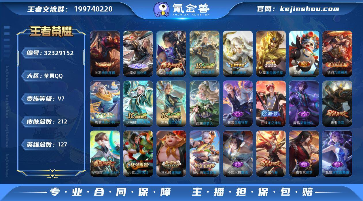 【XY677】贵族7/皮肤195/典藏1/传说10/史诗35/英雄125/空空儿全皮/最初的交响/神树通天/零号·赤焰/武圣/云鹰飞将/一念神魔/时之恋人-刘备/久胜战神/黄金狮子座/地狱之眼/超时空战士-狄仁杰/破阵·退雄兵/阴阳师/皇家上将/龙胆/白昼王子/重明(s11)/猎兽之王/云间偶戏/朔风刀(s17)/烛龙(s10)/穷奇(s12)/蓝屏警告/暗影游猎/魔术师/万华元夜(s22)/海滩派对/醍醐杖(s20)/演武夺筹(s23)/飞衡/潮玩骑士王/美猴王/大圣娶亲/御旌(s15)/辉光之辰/驱傩正仪(s24)/朔望之晖/饕餮(s9)/逐梦之光/原初探秘者(s21)/朱雀志/混沌棋(s18)/疑决卦(s19)/李小龙/御狮(s13)/御霄(s14)/纤云弄巧/御銮(s16)/西部大镖客-猪八戒/梁祝/妄想食味/剑破天穹(s35)/熔金海岸/逆浪荇歌/荣光之誓/线条小狗-周瑜/万灵启世/灵蛊蚀心/龙之律动/天秀·启明/时之恋人-孙尚香/神威/修罗/鹰眼统帅/节奏热浪/星夜王子/曙光守护者/末日机甲-吕布/千年之狐/幽灵船长/魅力维加斯/鬼剑武藏/偶像歌手/冰雪圆舞曲/未来纪元-赵云/溯影追猎/鹤鸣心笺/罗小黑战记/克喵/踏浪烽翎/落日弦歌/戏梦巡演/锦麟游梦/灵卦秘语/星梦巡礼/暗都幽影/功夫炙烤/破局者/零食大作战/潮玩探月行/紫罗兰之誓/铁甲之心/乓乓大师/秘密基地/无尽征程/圆桌骑士(盾山)/次元突破/炽热元素使/鲨炮海盗猫/野性能量/丁香结/虹云星官/科学大爆炸/守护之力/坚韧之力/如懿/幻乐之宴/敏锐之力/掌控之力/功夫老勺/命运角斗场/霸王丸/海滩丽影/纽约教父/阿尔法小队/万象初新/花好人间/五福同心/兔女郎/拳王/死亡骑士/少女阿狸/时尚教父/未来纪元-宫本武藏/鲤鱼之梦/化身博士/白色死神/红桃皇后/忍·炎影/大发明家/爱心护理/哥特玫瑰/街头霸王/教廷特使/启蛰/孤猎/熊喵少女/秩序猎龙将/冰刃幻境/归虚梦演-蒙犽/归虚梦演-鲁班大师/归虚梦演-西施/归虚梦演-曜/荷鲁斯之眼/森/创世神祝/露花倒影/修竹墨客/灼热之...