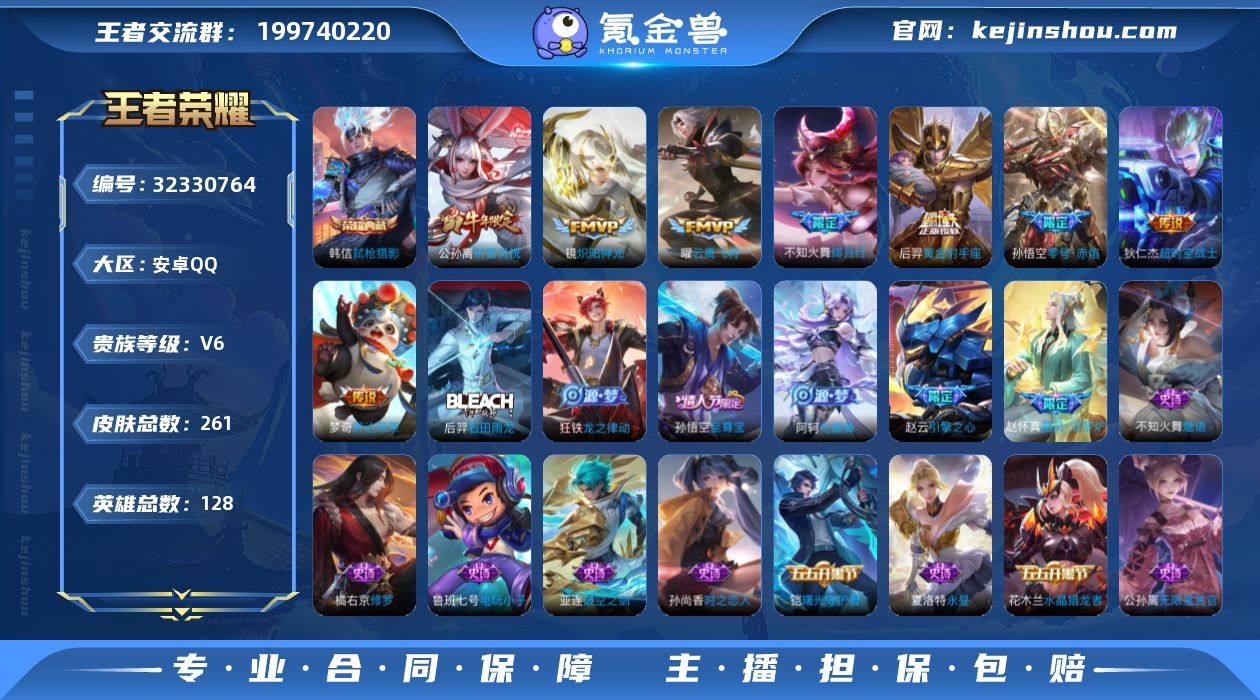 安卓Q-V6-最强王者段位-126英雄-155皮肤-1典藏皮肤-9传说-48史诗【英雄全皮】:孙权全皮【荣耀典藏】:花木兰九霄神辉【传说皮肤】:关羽神骥镇沧海,云缨幻光神枪,桑启鸣野蒿,澜逐花归海,吕布怒海麟威,赵云淬星耀世,达摩黄金狮子座,宫本武藏地狱之眼,孙悟空地狱火【限定皮肤】:蔡文姬夏日便利店,虞姬夏日便利店,姜子牙天穹之誓,李白谪仙醉月,狄仁杰阴阳师,赵云皇家上将,孙尚香蔷薇恋人,元歌无心,狄仁杰魔术师,项羽海滩派对,李元芳云中旅人,鬼谷子五谷丰年,裴擒虎李小龙,裴擒虎擒涛扼浪,云中君纤云弄巧,鲁班大师探海日志,桑启海盐诗旅,张良古海寻踪,高渐离燃音魔法,妲己灵卜魔法,鬼谷子天穹祈灯,姬小满妄想食味,沈梦溪龙舞盛年,刘邦剑破天穹,程咬金群星魔术团,周瑜熔金海岸【赛季限定】:李元芳云中旅人,桑启海盐诗旅,裴擒虎擒涛扼浪,鲁班大师探海日志,张良古海寻踪,鬼谷子天穹祈灯,刘邦剑破天穹,姜子牙天穹之誓,东皇太一噬灭天穹,太乙真人谧流熔炉,钟馗虚灵犬护,甄姬逆浪荇歌,亚瑟荣光之誓【战令限定】:高渐离燃音魔法,妲己灵卜魔法,蔡文姬夏日便利店,虞姬夏日便利店,百里守约百相守梦,老夫子百相守梦,刘禅鸭鸭历险记,...