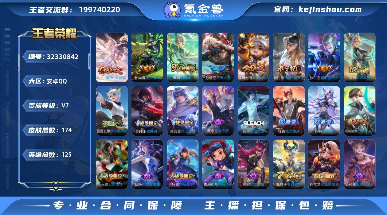 安卓Q-V5-最强王者段位-91英雄-76皮肤-1典藏皮肤-5传说-22史诗【英雄全皮】:孙权全皮【荣耀典藏】:诸葛亮星域神启【传说皮肤】:司空震愿照山河定,云缨幻光神枪,桑启鸣野蒿,马超无双飞将,狄仁杰超时空战士【限定皮肤】:狄仁杰阴阳师,赵云皇家上将,马可波罗山海玄木吟,项羽海滩派对,雅典娜黎明之约【年限皮肤】:马可波罗山海玄木吟,司空震愿照山河定【赛季限定】:东皇太一噬灭天穹,太乙真人谧流熔炉,钟馗虚灵犬护,甄姬逆浪荇歌,雅典娜黎明之约,项羽九幽镇关【战令限定】:孙膑茶境仙,马超访茗客,周瑜百相守梦,孙策百相守梦,周瑜线条小狗【史诗皮肤】:露娜紫霞仙子,赵云皇家上将,甄姬冰雪圆舞曲,宫本武藏鬼剑武藏,孙尚香水果甜心,妲己魅力维加斯,曹操幽灵船长,安琪拉心灵骇客,百里守约特工魅影,白起星夜王子,狄仁杰鹰眼统帅,橘右京修罗,马超神威,雅典娜黎明之约,马可波罗山海玄木吟,孙膑茶境仙,赵怀真器灵浮梦炉,阿轲化蝶舞,后羿石田雨龙,周瑜百相守梦,黄忠百相守梦,项羽九幽镇关,周瑜线条小狗【其他皮肤】:项羽海滩派对,韩信街头霸王,赵云忍炎影,白起白色死神,安琪拉玩偶对对碰,典韦黄金武士,亚瑟死亡骑士,达摩拳王,狄...