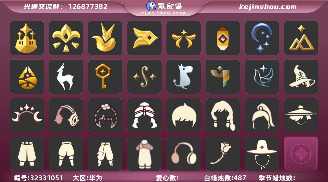 12季9翼搓澡巾正太虚荣妮妮长裙武士裤祥云瑞气服饰透明蝶翼疯帽 资源:蜡烛324 爱心141 9 翼 已毕业地图:全图毕业 毕业季节:破晓季 欧若拉季 追忆季 夜行季 拾光季 归巢季 九色鹿季 筑巢季 二重奏季 姆明季 双星季 迁徙季 毕业季节物品: 双翼遥鲲斗篷 冥龙斗篷 留辨蘑菇头 高领舞服 透明蝶翼斗 肩带 追忆之书 棕熊面具 绒毛斗篷 粗框眼镜 季卡相机 西部帽 五塑彩羽发 五塑彩带斗 九色鹿丸子头 九色鹿丝带裤 九色鹿飞天斗篷 设计师长袍 光之子试衣 合奏挂画 蓝色燕尾服 白色高脚钢琴 姆明抱枕 姆明大伞 姆明长裙 蓝色星星光环 暮星斗篷 蓝色毛绒绒鞋 蓝色毛绒裤子 海牛鹿角头饰 稀有礼包: 向日葵连衣裙礼包 祥云瑞气服饰 绊爱套装 青衫落拓礼包 大桔大利 雪花发饰 星月头冠 小黄鸭发饰 冥龙南瓜 热门裤子:背带裤 遥鲲长袍 绑带舞服 奔月长袍 妮妮长裙 连衣裙 白棉裤 搓澡巾 紧身连体衣 武士裤 女仆围裙 美工衣 祥云瑞气服饰 热门面具:矮人面具 狐狸面具 黄鼠狼面具 棕熊面具 盲僧眼罩 龙头 黑脸 粽叶面具 鹿角面具 热门发型:海藻头 爆炸头 大胡子 小飞象 雨妈 卡卡 平菇 龙骨 蝴蝶结 公主头 粗辫 水母头 书虫 总裁头 正太 明制帽 高马尾 郡主头 斗笠 绿丝带 虚荣 圆环发辫 留辫蘑菇头 失孤 李逍遥发型 彩色脏辫 彩羽发型 兔子头 双辫发型 樱花头 马蹄莲发型 猫猫头 女巫发型 疯帽 绊爱发型 光头 热门头饰:尖角牛仔帽 牛仔帽 双星季面饰 大桔大利 花环 珊瑚发饰 雪花分手 晃悠悠 小黄鸭发饰 红耳机 星月头冠 热门斗篷:红金斗篷 黑金斗篷 白金斗篷 蝴蝶斗篷 汉服斗篷 暗花斗篷 冥龙斗篷 遥鲲长斗 展翼圆环斗...