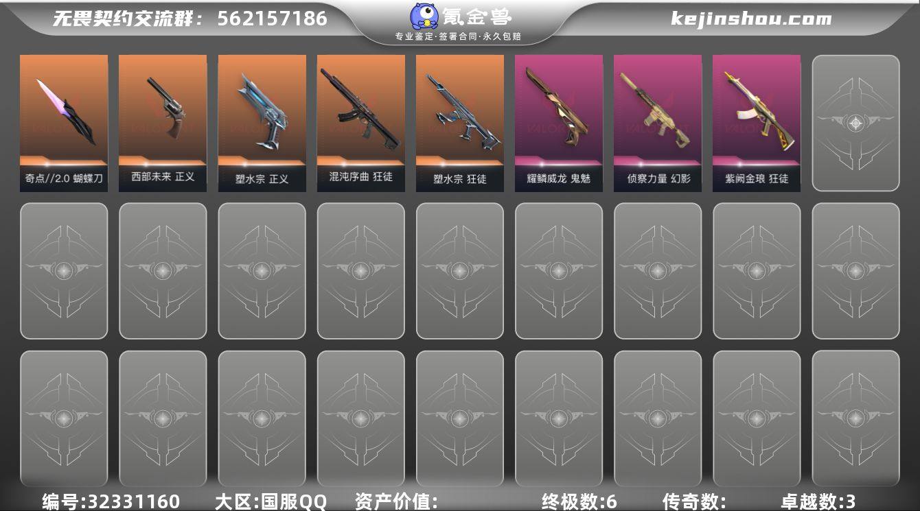 【qyz9418】可二次 紫金 塑水 混沌三狂徒 侦查幻影 紫金爪刀 应有尽有!qyz9418 【近战武器】:近战武器-奇点//2.0 蝴蝶刀,近战武器-紫金爪刀 【狂徒】:狂徒-混沌序曲,狂徒-塑水宗,狂徒-紫阙金琅 【幻影】:幻影-侦察力量 【骇灵】:骇灵-无限竞技 【正义】:正义-塑水宗,正义-西部未来 【鬼魅】:鬼魅-耀鳞威龙,鬼魅-诡秘蛇影 【卡面】:激斗汉堡 卡面,热舞环节 卡面,声感陷阱设计图 卡面,无畏契约GO!第一卷:芮娜 卡面,无畏契约GO!第一卷:零 卡面,《双城之战》金克丝 卡面,夯实根基 卡面,代号红色 卡面,新兵报到 卡面,V契约 卡面,无畏契约 卡面 【喷漆】:买装还是存钱 喷漆,沙尘幻旅 喷漆,胜利属于无畏契约 喷漆,GLHF 喷漆,无畏契约 喷漆 【挂饰】:天外飞客 挂饰,无畏契约 纪念币 挂饰