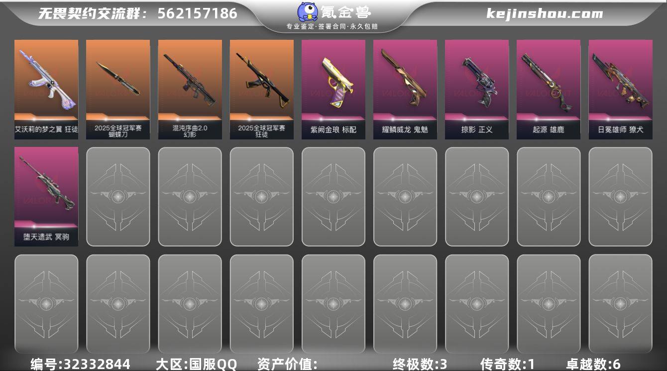 【套装】:2025全球冠军赛套装【英雄】:炼狱,暮蝶,钛狐,壹决,铁臂,捷风,雷兹,幽影,不死鸟,贤者,猎枭,芮娜,奇乐,尚勃勒,斯凯,夜露,星礈,K/O,海神,盖可,黑梦,钢锁【近战武器】:近战武器-2025全球冠军赛 蝴蝶刀【狂徒】:狂徒-2025全球冠军赛,狂徒-艾沃莉的梦之翼【幻影】:幻影-混沌序曲//2.0【獠犬】:獠犬-日冕雄师【冥驹】:冥驹-堕天遗武【雄鹿】:雄鹿-起源【骇灵】:骇灵-无限竞技【标配】:标配-紫阙金琅【正义】:正义-掠影【鬼魅】:鬼魅-耀鳞威龙【卡面】:南瓜盛典 卡面,Clutch 卡面,零点嗅探设计图 卡面,无畏契约GO!第一卷:芮娜 卡面,无畏契约GO!第一卷:零 卡面,《双城之战》金克丝 卡面,暗枪 卡面,"Luie" 卡面,铁臂设计图 卡面,代号红色 卡面,冰淇淋店 卡面,新兵报到 卡面,V契约 卡面,无畏契约 卡面【喷漆】:买装还是存钱 喷漆,醒狮贺春 喷漆,胜利属于无畏契约 喷漆,GLHF 喷漆,无畏契约 喷漆【挂饰】:第八季//第三幕 纪念币 挂饰,天外飞客 挂饰,好运福爪 挂饰,第七季//第三幕 纪念币 挂饰,幸运中国结 挂饰,第七季//第二幕 纪念币 挂饰,无畏契约 纪念币 挂饰