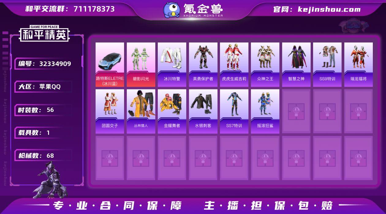 M1046707【有二次 1载具-1粉装】苹果手Q-1载具-1粉装-56套装-68枪皮-6王牌印记-英勇黄金Ⅰ-22228热力值【1载具】路特斯ELETRE(冰川蓝)【1粉装】碧影闪光【2飞行器】粉色滑翔尾迹,红色滑翔尾迹【1头盔】精灵迷巫头盔【123其它衣服和枪皮】夏日音浪,骑行爱好者,潮流游乐家,黄色名流,长空猛禽,吉莉礼服,雪山精英,探宝勇士,角色-英勇保护者,丛林猎人,黑色伏地魔,音速流光,耀眼新星,SS21特训,智慧之神,SS17特训,幻世战舞者,冷焰舞者,霓虹街区,竞技勇士朋克,热血青春,北国孤狼,SS7特训,水银刺客,SS6特训,瑞龙福将,SS10特训,SS29特训,竞技名士,格斗先锋,金耀舞者,众神之王,人气偶像,SS14特训,福星高照,冰川特警,灰色格斗者,野性战心,击剑大师,SS9特训,暗夜傀儡,SS19特训,SS16特训,虎虎生威吉莉,摇滚狂鲨,SS8特训,SS20特训,魅力单车,疯狂小兔子,飞驰魅影,传奇侦探,SS15特训,跃动心情,团圆交子,青春冒险家,平底锅-青春冒险家,SLR-众神之王,GROZA-青春物语,汤姆逊-耀粉歌者,S12K-华贵君王,S686-生命誓言,Kar98K-飞驰魅影,M416-红色方程式,Kar98K-红色方程式,野牛-青春冒险家,S12K-瑞龙福将,Mk14-乌木金纹,平底锅-绯红前夜,QBZ-飞驰魅影,M762-瑞龙福将,S1897-飞驰魅影,AKM-灼热熔岩,撬棍-...