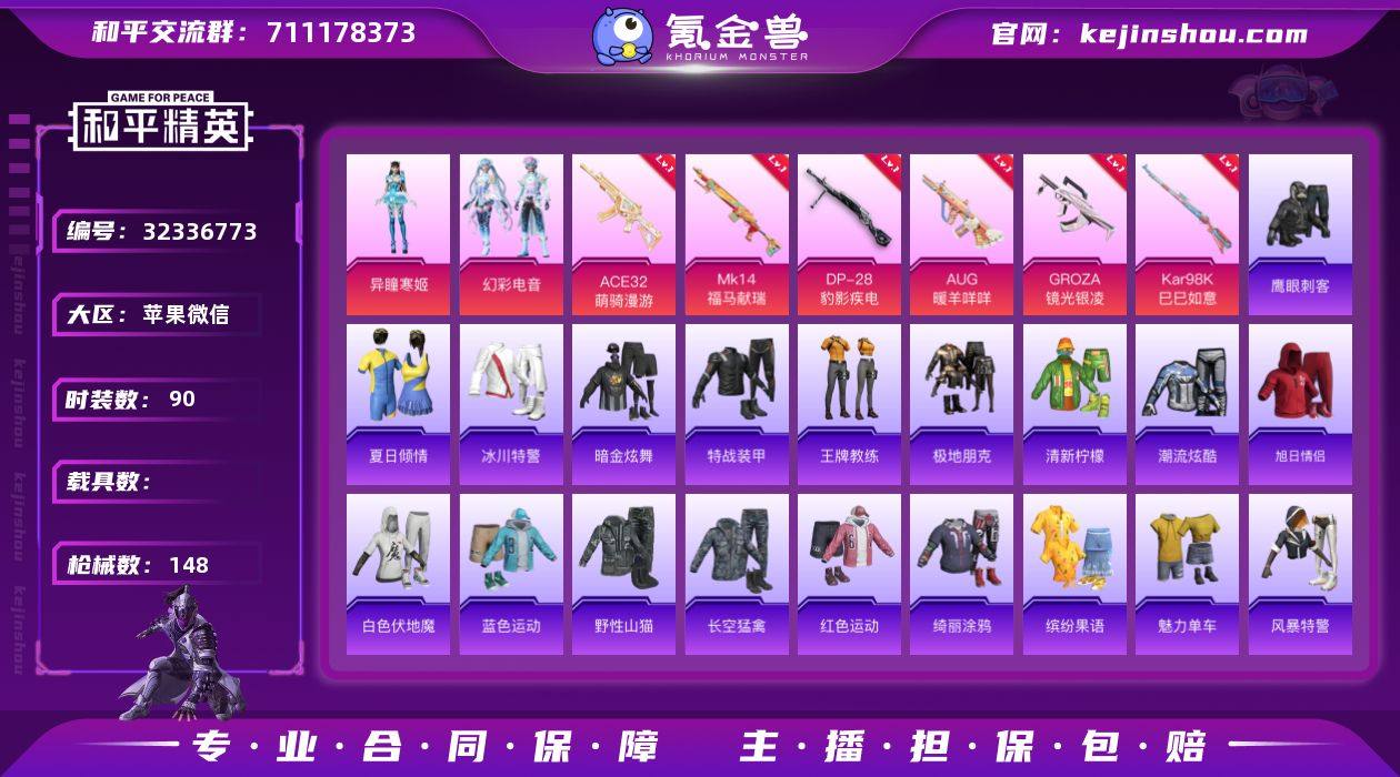 WJ808苹果手Q-2粉装-7特效枪-85套装-157枪皮-10王牌印记-超级王牌2星-42020热力值【2粉装】角色-冷漠罗丽,星穹咏叹调【7特效枪】Mk14-甜梦熊击[5级],Mk14-福马献瑞[5级],AKS-74U-森灵之息[5级],P90-冷漠罗丽[7级],DP-28-豹影疾电[5级],Kar98K-巳巳如意[5级],UMP45-萌骑冒险[3级]【12飞行器】冰柠泡泡飞行器,马上有福飞行器,登顶巅峰飞行器,荒原烈焰飞行器,炫彩糖果飞行器,云朵驼驼飞行器,顶峰精英尾迹,破刃行动尾迹,异域银装飞行器,空岛之星尾迹,鸡智如我飞行器,狂鲨锋刃飞行器【233其它衣服和枪皮】猛禽,蝶变,云朵鹅,SS37特训,星途旅人,迅捷狂鲨,雏菊兔兔,粉黛兰香,SS27特训,SS28特训,雪绒豹,星影赞美诗,角色-紫俏灵猫,角色-狂花道·娜可露露,竞技名士,SS30特训,小熊娃娃,彩虹兔,福马献瑞,热情海星,阳光菠萝,炫彩糖果,角色-曹焱兵,狙击之神,青春校园,SS29特训,王牌教练,异域银装,海岛探路者,旭日情侣,狂鲨锋刃,萝兰蝴蝶,马上来财,海盐绵绵冰,角色-乐音,角色-灵公主,SS36特训,街头潮人,角色-时希公主,白色伏地魔,恋语绒绒,缤纷果语,香桃花海,薄荷星砂,顶瓜瓜,黑色伏地魔,雨过天青,青翼流星,燕燕于飞,战术大师,萌鸡速递,白糯汤圆,魅力单车,SS32特训,角色-风玲,角色-冰公主,SS33特训,霓虹热舞,粉恋花,红釉青花,黄色伏地魔,破蛋小黄鸡,黄色名流,SS34特训,SS35特训,紫幽梦,老实芭蕉,鱼渊荷华,巳巳如意,长空猛禽,智谋强哥,龟仙人,街头风暴,元气之梦,冰河战士,黄色运动,幻世战舞者,雪国风尚,纯真浪花,SS31特训,蓝冰羽,空岛之星,角色-海琴烟,S686-巳巳如意,Mk14-薄荷星砂,平底锅-紫幽梦,平底锅-属我最6,SCAR-L-彩虹符号,SCAR-L-海盐豹豹,蝎式手枪-燕燕于飞,燃烧瓶-甜梦桃焰,撬棍-冰晶雪宝,AMR-鬼刀,平底锅-空岛之星,沙漠之鹰-雨过天青,Win94-拳皇·狂花道,S12K-极意拳锋,AKS-74U