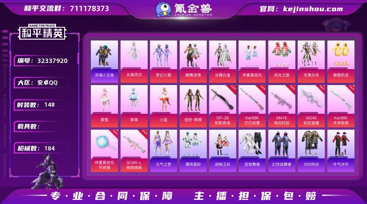 可二次实名【女号梦幻火箭12粉装7特效枪 秒换绑不用等】 安卓Q区-72430热力值-8印记-148套装-184枪皮 【12粉装】 梦幻火箭 冰霜白皇 蝶舞迷情 炫光之旅 傲傲奶龙 仲夏莫吉托 创世·救赎 无畏白羊 角色-小蓝 角色-美雪 角色-美琪 角色-女娲灵识【7特效枪】 SCAR-L-锦绣绵绵(5级) Kar98K-未来歌姬(4级) M249-彩虹甜喵(6级) 平底锅-仲夏莫吉托(1级) Kar98K-巳巳如意(5级) M416-电玩时刻(5级) DP-28-豹影疾电(2级)【131热门】 雪山精英(老6服) 破蛋小黄鸡 小丑鱼 深海小丑鱼 暗影哥特(红眼罩) 白色伏地魔 SS9特训 SS8特训 SS6特训 SS27特训 SS26特训 SS25特训 SS24特训 SS23特训 SS22特训 GROZA-乌木金纹 SCAR-L-玉兔迎春 GROZA-田园牧歌 M762-天降萌叽 Mk47-乌木金纹 SKS-糯团青竹 UZI-娇憨猪猪 UMP45-蓝色火焰 S12K-垂柳戏鸭 M249-彩虹符号 MG3-幻世战舞者 AKM-霓虹街区 AKM-春暖花开 M416-蓝色火焰 GROZA-异彩先驱 GROZA-春暖花开 M762-第五大道 长空猛禽 异彩先驱 甜蜜熊情侣 青涩时光 青年教官 骑行爱好者 暖心熊熊 牛气冲天 霓虹街区 霓虹极客 妙红点点 梦幻奶油 懵萌河马 魅力单车 蓝色运动 酷萌兔限定 竞技勇士朋克 竞技达人朋克 坚韧舞者 黄色伏地魔 黑色伏地魔 和煦暖阳...