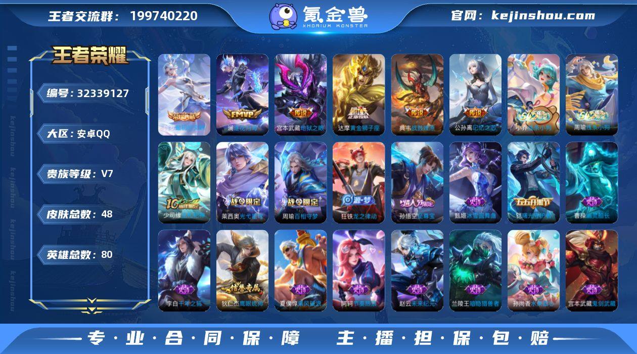 无二次-安卓Q-V7-最强王者段位-80英雄-48皮肤-1典藏皮肤-5传说-23史诗HZ2631407 【荣耀典藏】:伽罗最初的交响 【传说皮肤】:典韦战鼓燎原,澜逐花归海,公孙离记忆之芯,达摩黄金狮子座,宫本武藏地狱之眼 【限定皮肤】:狄仁杰阴阳师,赵云皇家上将,狄仁杰魔术师,项羽海滩派对,孙悟空至尊宝,李元芳云中旅人,沈梦溪大漠名商 【赛季限定】:沈梦溪大漠名商,李元芳云中旅人,亚瑟荣光之誓 【战令限定】:周瑜百相守梦,孙策百相守梦,莱西奥光弋星穹,明世隐往忆晖光,周瑜线条小狗,小乔线条小狗 【史诗皮肤】:周瑜线条小狗,小乔线条小狗,少司缘巫礼祀神,莱西奥光弋星穹,周瑜百相守梦,狂铁龙之律动,狄仁杰鹰眼统帅,阿轲节奏热浪,铠曙光守护者,雅典娜冰冠公主,兰陵王暗隐猎兽者,夏侯惇乘风破浪,孙悟空至尊宝,李白千年之狐,曹操幽灵船长,吕布圣诞狂欢,妲己魅力维加斯,孙尚香水果甜心,宫本武藏鬼剑武藏,狄仁杰魔术师,王昭君偶像歌手,甄姬冰雪圆舞曲,赵云未来纪元,赵云皇家上将 【其他皮肤】:艾琳鹤鸣心笺,明世隐往忆晖光,亚瑟荣光之誓,孙策百相守梦,海月幻泉雾影,李元芳云中旅人,沈梦溪大漠名商,王昭君幻想奇妙夜,狄仁杰阴阳师,后羿阿...