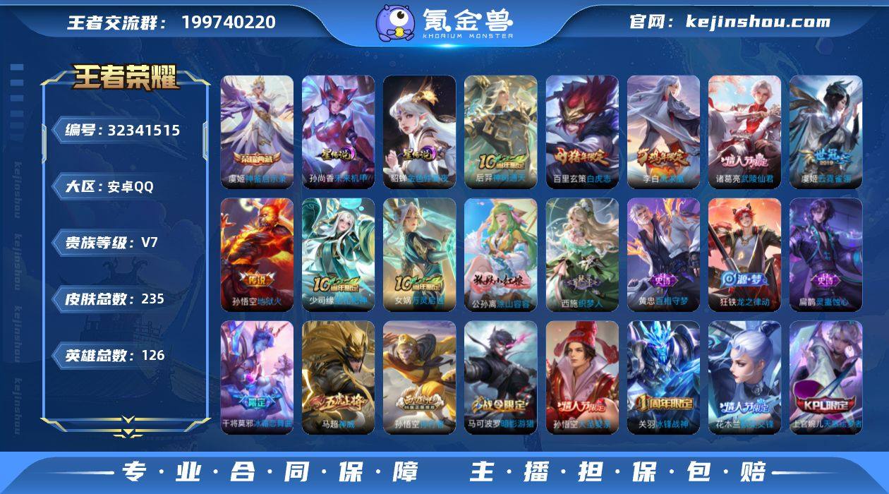 【XY615】贵族7/皮肤176/典藏1/传说13/史诗51/英雄126/孙权全皮/鸣剑·曳影/怪盗基德/神树通天/愿照·千秋盛/愿照·九州拓/幻光神枪/鸣野蒿/乘龙·淬吴钩/诗剑行/武圣/云鹰飞将/一念神魔/时之恋人-刘备/黄金白羊座/久胜战神/蒙犽顽岩魄/天穹之誓(s36)/阴阳师/皇家上将/玩趣恶龙/王者之锤/魔术师/万华元夜(s22)/沙漠行僧(s26)/海滩派对/醍醐杖(s20)/午后时光/云中旅人(s29)/驱傩正仪(s24)/黎明之约/原初探秘者(s21)/混沌棋(s18)/大漠名商(s28)/疑决卦(s19)/擒涛扼浪(s31)/电玩高手/御銮(s16)/探海日志(s32)/海盐诗旅(s30)/江河有灵/古海寻踪(s33)/鬼谷子天穹祈灯(S34)/龙武盛年/剑破天穹(s35)/上官婉儿群星魔术团/程咬金群星魔术团/熔金海岸/噬灭天穹(s37)/谧流熔炉/荣光之誓/星界战将/九幽镇关/破空之剑/神迹守卫/线条小狗-周瑜/万灵启世/龙之律动/器灵·浮梦炉/万物之道/星界特工/赏金猎手/永昼/暗渊魔法/月团寄思/热力回旋/魅语/晚萤/鹰眼统帅/节奏热浪/星夜王子/功夫厨神/逐浪之夏/天才门将/曙光守护者/特工魅影/心灵骇客/黄金分割率/暗隐猎兽者/乘风破浪/水晶猎龙者/白龙吟/乱世虎臣/末日机甲-吕布/幽灵船长/绅士熊喵/金属风暴/魅力维加斯/水果甜心/鬼剑武藏/偶像歌手/冰雪圆舞曲/圣诞恋歌/未来纪元-赵云/紫霞仙子/苍穹之光/班班快跑/鹤鸣心笺/径山谋武/灵卦秘语/爆裂喵拳/星梦巡礼/雪境奇遇-西施/苍林狼骑/雾都夜雨/暗都幽影/功夫炙烤/朵莉亚金色潮汐/聚星闪耀/妄想特派/零食大作战/西部游侠/潮玩探月行/幻泉雾影-海月/蔚蓝守将/胡桃狂想曲/唤灵魔甲/乓乓大师/缤纷绘卷/特工战影/圆桌骑士(盾山)/黑桃队长/次元突破/丁香结/守护之力/敏锐之力/掌控之力/功夫老勺/幻想奇妙夜/龙腾万里/纽约教父/阿尔法小队/万象初新/万事如意/花好人间/兔女郎/拳王/死亡骑士/黄金武士/少女阿狸/天使之翼/化身博士/白色死神/红桃皇...