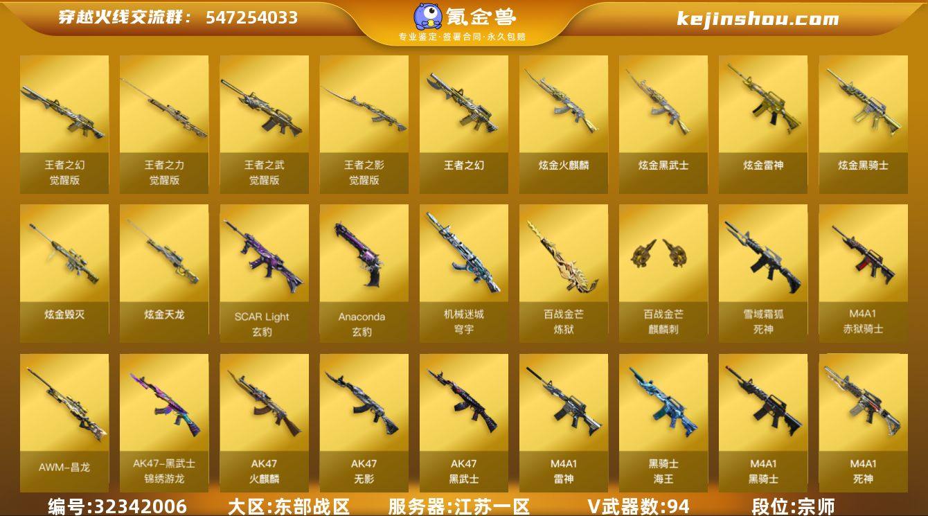 76V/100级/元帅/3王者/5炫金/2英雄/QBZ03-金色蔷薇/M200-幻神/死亡之眼/白虎-电玩蓝兔/Kar98k-星神/M4A1-黑骑士/汤姆逊-烈龙/RPK-盘龙/加特林-炼狱/沙鹰-修罗/炫金火麒麟/炫金黑骑士/炫金黑龙/炫金超新星/炫金毁灭/AK47-火麒麟音效卡/M4A1-黑龙音效卡/M4A1-黑骑士音效卡/Barrett-毁灭音效卡/幻神冠军之幻/烈龙-星空/雷神-耀金皮肤/雷神-烈虎皮肤/火麒麟-雷神/火麒麟-华夏之心/火麒麟-平天大圣/毁灭-冠军之怒/毁灭-黑大圣皮肤/毁灭-风暴/M4A1-千变-孔明皮肤/黑龙-能量核心/黑骑士-暗月/无影-暗月/死神-秘银/战神-粉色甜心皮肤/战神-紫绶金章皮肤/战神-流金岁月皮肤/AK47-B-常胜将军-曹操/AK47-B-常胜将军-刘备/AK47-B-常胜将军-孙权/天龙-能量核心/炼狱-星空/修罗-能量核心/葵/鹰/王者-瞳-闭月羞花/修道士/初恋灵狐/风暴女/虎妞/嘉年华灵狐/兰-新年限定/0号玩家/灵狐者-X/灵狐者-黄金海岸/龙儿/麻雀/潘多拉-X/潘多拉-甜心教官/潜龙队-X/青霞仙子/蜀雪/雪莉杨/影武者-X/职业选手/天龙-曼陀罗/火麒麟-灵狐/M4A1-雷神-精英刀锋/AWM-灵狐-15周年嘉年华/海滩汪汪-巴雷特/迷你深渊冰龙/迷你裂空之翼/夺魂/迷你牛牛/迷你生化手雷/生化手雷-机甲核心/深渊终结者手雷/闪光弹-小乔/闪光弹-貂蝉/高爆手雷-大乔/迷你艾比/迷你超能女侍/灵狐娃娃手雷/超级对讲机/6烈龙/5盘龙/致命乱世-超越/冰龙粉碎者-白马银枪/激光毁灭者/神圣爆裂者-末日/AK47-火麒麟/M4A1-黑龙/M4A1-雷神/AK47-无影/M4A1-死神/AK12-天启/AN94-超新星/AK47-黑鲨/M4A1-玫瑰精灵/AK-47-猩红传说/AK47-B-战神/黑骑士-海王/AK47-B-常胜将军/AWM-天龙/Barrett-毁灭/Barrett-极光/AWM-裁决/Barrett-朱雀/炼狱-风暴/AA-12-雷霆/沙鹰-天神/王者之魂-觉醒版/屠龙/龙啸/马来剑夜魔/擎天/麒麟刺/擎天-竞技荣光/王者之啸-觉醒版/高爆手雷-雷霆/高爆手雷-夜魔/高爆手雷-竞技...