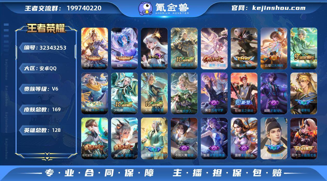 安卓Q-V7-永恒钻石II段位-107英雄-112皮肤-9传说-35史诗【传说皮肤】:后羿神树通天,诸葛亮时雨天司,铠绛天战甲,孙悟空零号赤焰,曜云鹰飞将,李信一念神魔,干将莫邪久胜战神,花木兰冠军飞将,狄仁杰超时空战士【限定皮肤】:狄仁杰阴阳师,赵云皇家上将,墨子神迹守卫,吕布御风骁将,元歌云间偶戏,狄仁杰魔术师,狄仁杰万华元夜,达摩沙漠行僧,项羽海滩派对,老夫子醍醐杖,老夫子航海奇遇记,程咬金演武夺筹,亚瑟潮玩骑士王,孙悟空零号赤焰,钟馗驱傩正仪,干将莫邪冰霜恋舞曲,鬼谷子原初探秘者,诸葛亮时雨天司,苏烈千军破阵,裴擒虎李小龙,裴擒虎擒涛扼浪,鲁班大师探海日志,桑启海盐诗旅,张良古海寻踪,鬼谷子天穹祈灯,姬小满妄想食味【年限皮肤】:诸葛亮时雨天司,吕布御风骁将【赛季限定】:老夫子醍醐杖,鬼谷子原初探秘者,狄仁杰万华元夜,程咬金演武夺筹,钟馗驱傩正仪,苏烈千军破阵,达摩沙漠行僧,桑启海盐诗旅,裴擒虎擒涛扼浪,鲁班大师探海日志,张良古海寻踪,鬼谷子天穹祈灯,亚瑟荣光之誓【战令限定】:元歌云间偶戏,亚瑟潮玩骑士王,老夫子航海奇遇记,墨子神迹守卫,周瑜线条小狗【史诗皮肤】:赵云皇家上将,赵云未来纪元,甄姬冰雪...