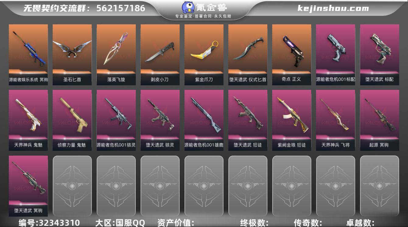 MWW027【皮肤资产价值47350 使用源晶点数1020 皮肤106 金1 橙16 紫15】【游戏等级】Lv157 【段位】 未定级 【R点】1,020 【皮肤总价值】47,350 【英雄数量】25 【皮肤数量】106 【挂饰数量】86 【卡面数量】119 【喷漆数量】118 【正义】正义-超限闪存 正义-纤云弄巧 正义-复古浪潮 正义-沙尘幻旅 正义-奇点 【近战武器】近战武器-超能偶像应援棒 近战武器-流星兵团短剑 近战武器-紫金爪刀 近战武器-落英飞旋 近战武器-珍珠棘贝短剑 近战武器-堕天遗武仪式匕首 近战武器-钢轨卫士战锤 近战武器-再见安打 近战武器-沙尘幻旅匕首 近战武器-圣石匕首 近战武器-剥皮小刀 近战武器-无畏契约GO!第一卷苦无 近战武器-侦察力量蝴蝶刀 近战武器-弧光异彩军刀 【戍卫】戍卫-超能偶像 戍卫-战术熊与伙伴们 戍卫-珍珠棘贝 戍卫-钢轨卫士 戍卫-萌彩剪影 戍卫-彩梦之城 【狂徒】狂徒-超能偶像 狂徒-混沌序曲 狂徒-流星兵团 狂徒-盖亚的复仇 狂徒-堕天遗武 狂徒-钢轨卫士 狂徒-沙尘幻旅 狂徒-弧光异彩 狂徒-紫阙金琅 【判官】判官-超能偶像 判官-采蜜小蜂队 判官-萌彩剪影 【獠犬】獠犬-采蜜小蜂队 獠犬-复古浪潮 獠犬-战术小伙伴 獠犬-胡桃狂想 獠犬-弧光异彩 【幻影】幻影-聚合之力 幻影-...