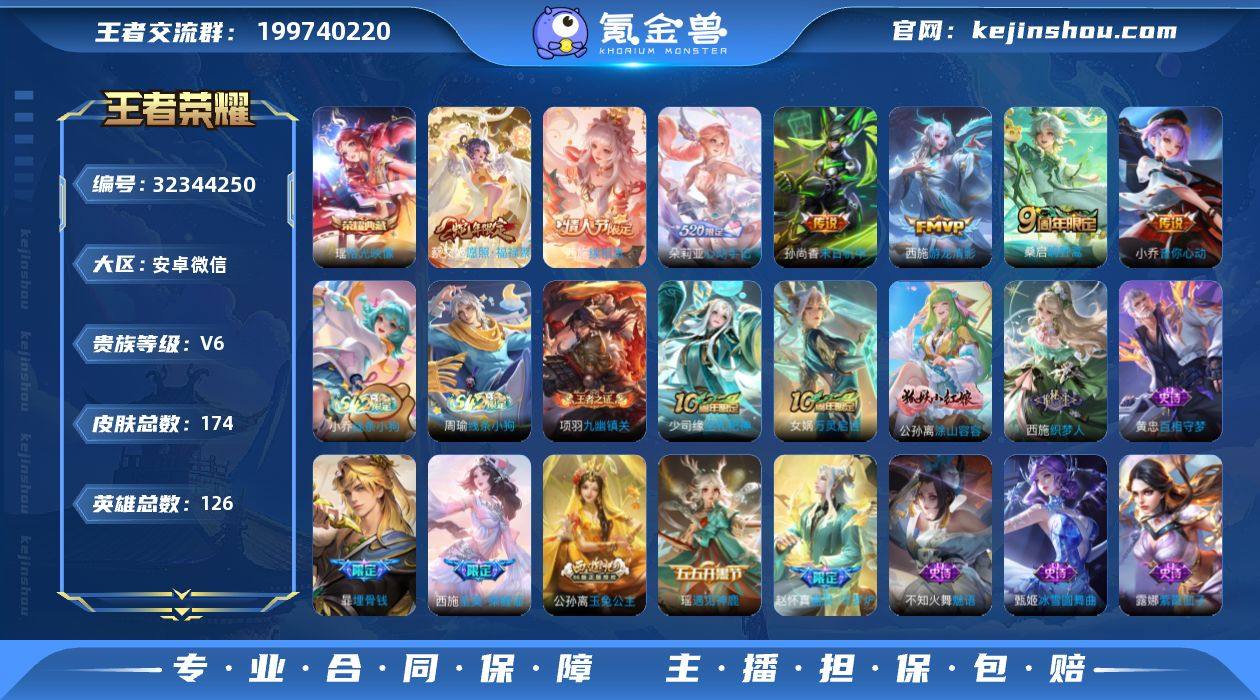 我购买的 成品号 中介 其他商品 安卓微信 默认服 西施全皮!极品小女号!安卓WX-V7-至尊星耀IV段位-125英雄-173皮肤-1典藏皮肤-7传说-53史诗 【英雄全皮】:西施全皮 【荣耀典藏】:瑶拾光映像 【传说皮肤】:西施续相思,蔡文姬愿照福禄聚,桑启鸣野蒿,朵莉亚心动手记,西施游龙清影,小乔音你心动,孙尚香末日机甲 【限定皮肤】:暃埋骨钱,蒙犽顽岩魄,蔡文姬夏日便利店,大乔绒语心约,虞姬夏日便利店,姜子牙天穹之誓,狄仁杰阴阳师,赵云皇家上将,狄仁杰魔术师,项羽海滩派对,杨玉环遇见飞天,蔡文姬繁星吟游,百里玄策原初追逐者,公孙离玉兔公主,嫦娥拒霜思,西施玲珑珍味,西施至美乘鲤谣,鲁班大师探海日志,阿古朵江河有灵,张良古海寻踪,鬼谷子天穹祈灯,沈梦溪龙舞盛年,刘邦剑破天穹,程咬金群星魔术团,镜青焰无极,项羽苍威无极,朵莉亚心动手记,周瑜熔金海岸 【年限皮肤】:蔡文姬愿照福禄聚 【赛季限定】:鲁班大师探海日志,张良古海寻踪,鬼谷子天穹祈灯,刘邦剑破天穹,姜子牙天穹之誓,东皇太一噬灭天穹,太乙真人谧流熔炉,钟馗虚灵犬护,甄姬逆浪荇歌,亚瑟荣光之誓,百里玄策原